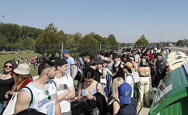 Las largas colas en los urinarios, con medio centenar distribuidos en dos zonas del parque Ribera Sur, se suceden desde primera hora