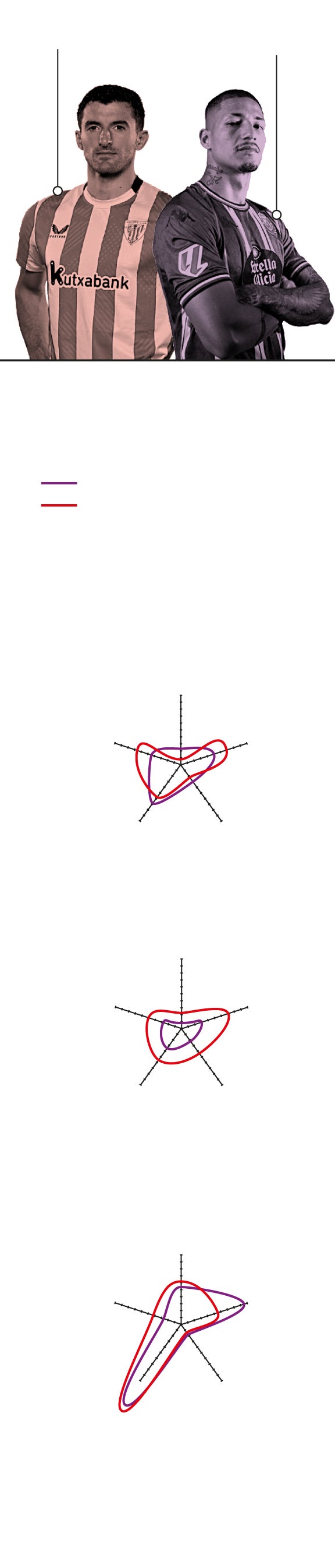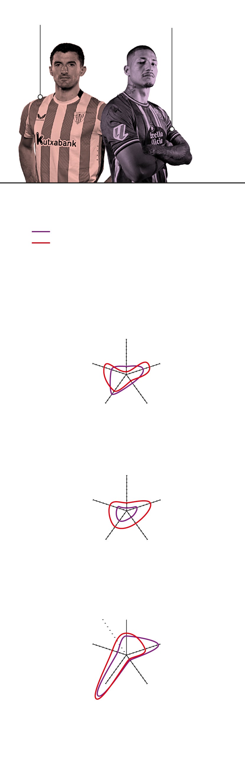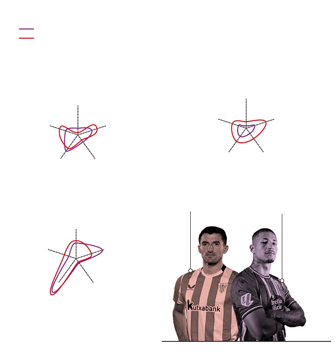 Las escalas muestran un análisis comparativo de los dos equipos en tres aspectos: