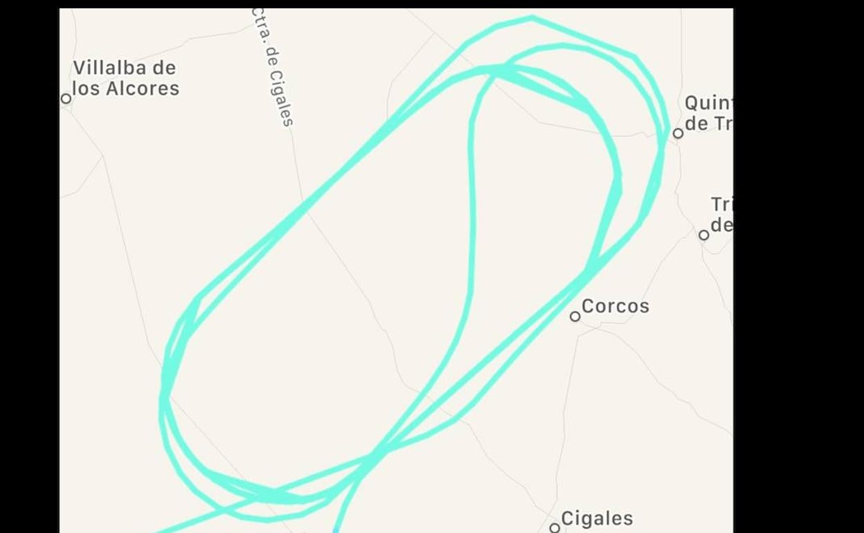 El avión pudo verse (y escucharse) en el centro de Valladolid a la 1:46 de la madrugada, ya que atravesó la ciudad a una altitud inferior a los 12.000 pies (3,6 kilómetros). Tras sobrevolar Laguna, Boecillo y Mojados enfiló hacia Segovia y aterrizó en Madrid-Barajas a las 2:08 tras cruzar la capital (pasó por encima del estadio Santiago Bernabeú) y girar al sur de la comunidad, en Arganda del Rey.