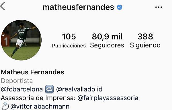 Tras las llegadas de Jose Antonio Caro, Raúl García Carnero y Ben Arfa a la disciplina blanquivioleta, ahora el turno es para el centrocampista Matheus Fernandes que, a falta de confirmarse la operación de forma oficial, ya ha colocado en sus redes sociales el nombre del Real Valladolid, club al que llegará en forma de cedido hasta final de temporada una vez que firme con el FC Barcelona.