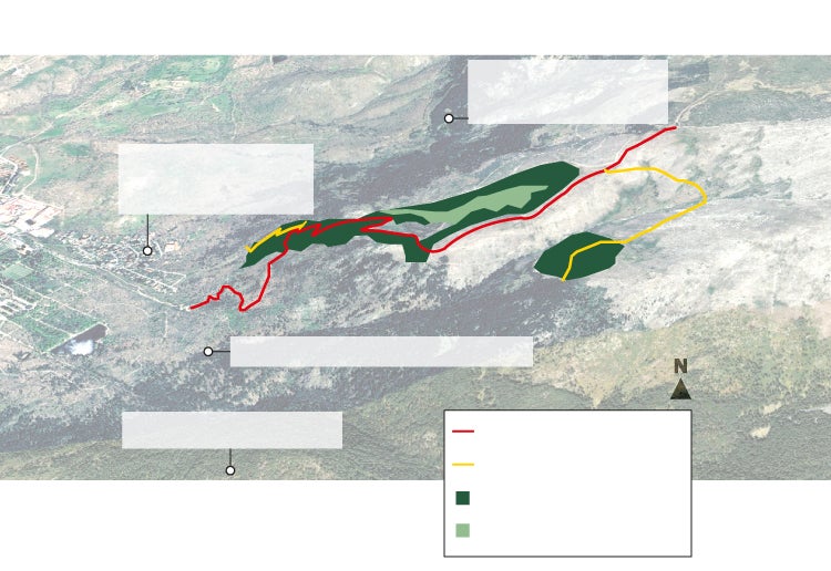 El cortafuegos de Fuente Infantes ayudó a contener el fuego a la derecha de la línea que dibuja desde La Granja. El trabajo de extinción y la meteorología —el viento de dirección sur sirvió de pared— impidieron que el fuego se extendiera a los montes de Valsaín.
