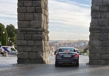 Un par de horas más tarde, otra furgoneta cruzó por debajo de uno de los arcos situados en la plaza del Azoguejo para acceder a la plaza Oriental, un recorrido expresamente prohibido para cualquier vehículo que no sea ambulancia o coche patrulla.