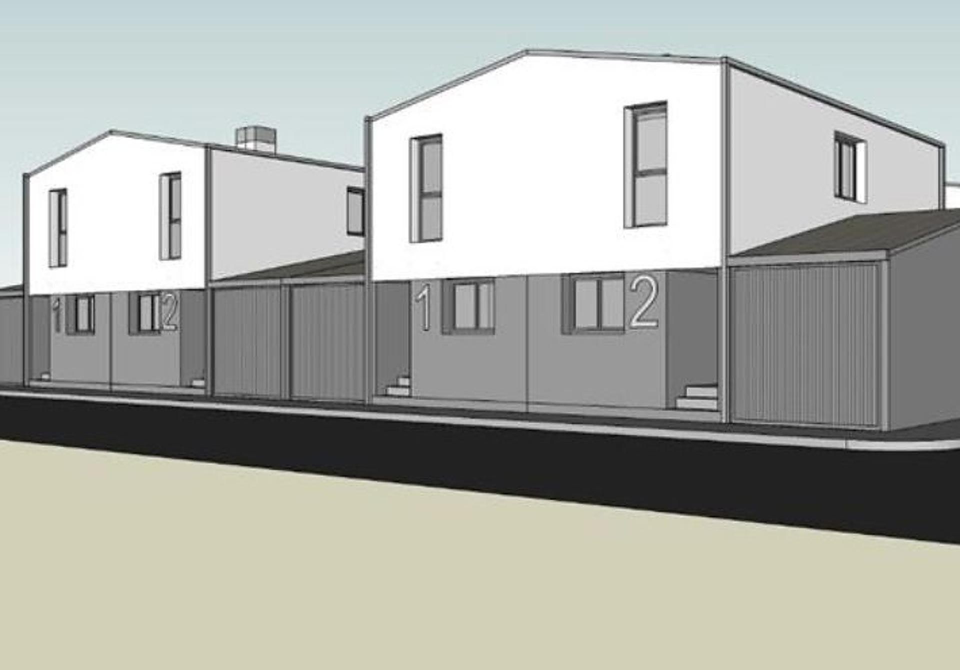 Los dos conjuntos residenciales se distribuyen en ocho y doce inmuebles. Están formados por la repetición de «una pequeña vivienda unifamiliar de tres dormitorios», recoge el pliego del proyecto. Tendrán dos alturas, de modo que la planta baja, que estará elevada tres escalones de la vía pública, será la zona de día. En concreto, albergará la cocina, un dormitorio, salón, patio trasero con porche y un garaje con espacio para guardar un vehículo. La planta primera contará con dos dormitorios y un baño completo.