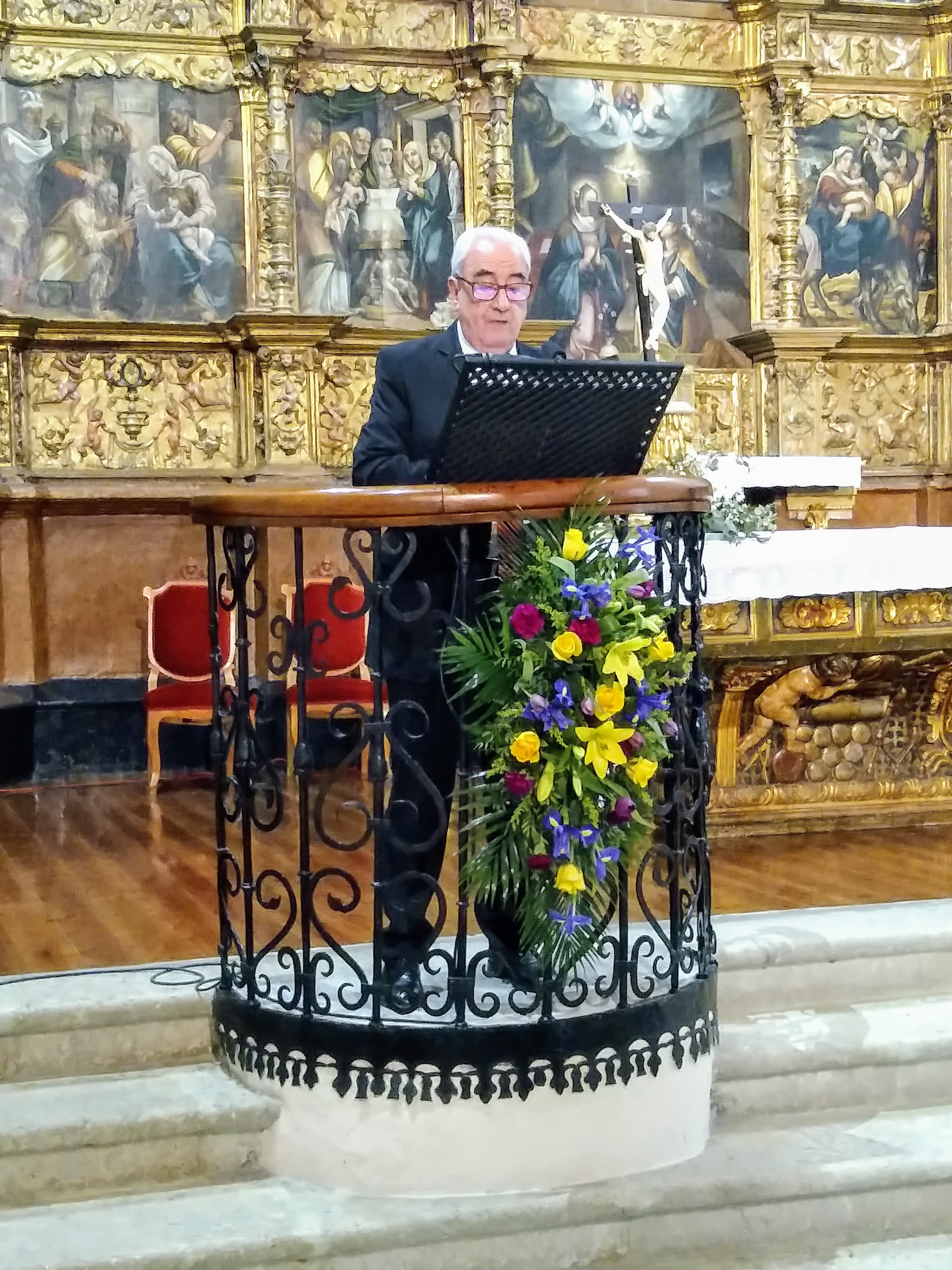 José Manuel de la Fuente, que durante diecisiete años fue el cura de la localidad y que durante ese tiempo sintió Tordesillas como si fuera su propio pueblo, ha ofrecido un discurso conmovedor en el que ha propuesto a los asistentes un viaje a través de las procesiones, retratando las sensaciones y la visión de las mismas como si las estuviera viviendo de nuevo en ese mismo momento, y recordando en ellas las emociones que le transmitieron en sus tiempos como párroco.