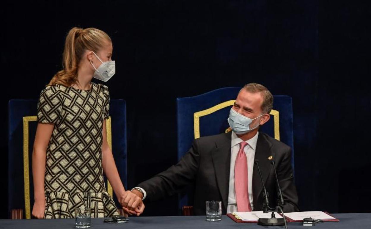 La princesa Leonor y el Felipe VI se estrechan la mano durante la ceremonia. Eloy Alonso / efe