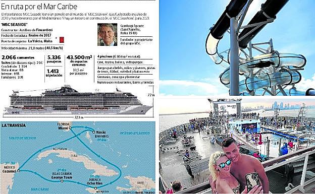 Hoy la contemplan cuatro, atracados en fila india. Su puerto de cruceros, el más importante del mundo –su supermuelle puede albergar a la vez hasta una decena de estos megalodones– bulle en las horas previas a levar anclas. El 'MSC Seaside' ha atracado a las siete de la mañana procedente de una singladura de una semana por el Caribe Oriental. A las siete de la tarde, se pondrá de nuevo en ruta para emprender una travesía de idéntica duración por el flanco Occidental. En apenas doce horas –su única tregua periódica desde su botadura, hace veintidós meses– debe despedir al pasaje, borrar las huellas de su paso por allí, recibir a la nueva remesa como si estuviera de estreno y cargar su bodega con todo lo necesario para que, además de la tripulación –1.413 personas de 40 nacionalidades–, la friolera de 5.336 viajeros procedentes de Kansas City, Dusseldorf, Bombay, Trento, Salvador de Bahía, Copenhague, Lyon o Barbate– coman y beban como si a su regreso a casa les aguardara un cartilla de racionamiento.