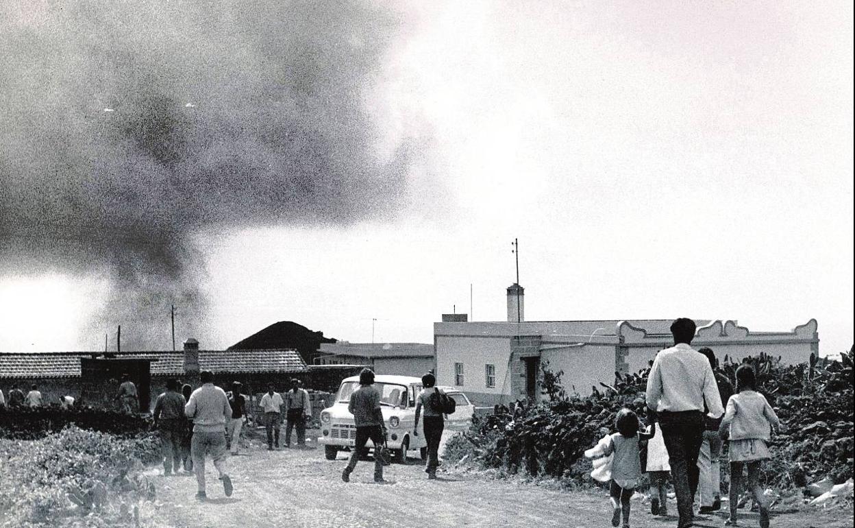 La anterior erupción volcánica destacable en Canarias, también como este domingo en Cumbre Vieja, ocurrió en la isla de La Palma. Tuvo lugar un mes de octubre del año 1971, cuando el día 26, tras numeros terrremotos que mantuvieron la alerta a la población, la tierra se abría para dar lugar a la erupción. Aquel fenómeno surgió de El Teneguía, al sur de la isla, que había permanecido inactivo desde 1677. La lava hizo crecer la isla en unos dos millones de metros cuadrados al verter la lava sobre el mar. En esta ocasión solo hubo pérdidas materiales -cultivos y carreteras- y se movilizó la flota de la isla para evacuar a la población. La única víctima mortal fue un turista que se intoxicó con los gases procedentes del volcán cuando se acerco para verlo de cerca.