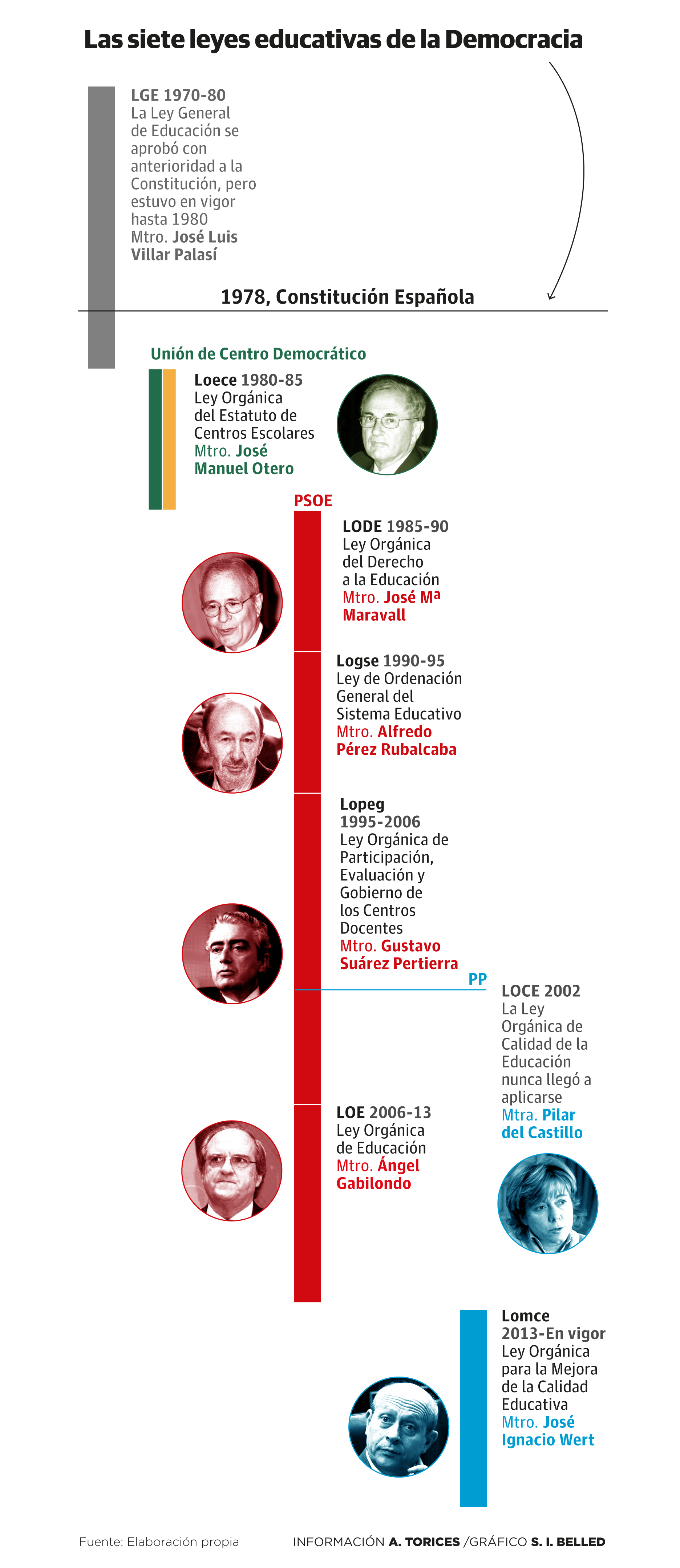 El empeño incesante en que cada gobierno de turno se dote de su propia ley educativa es visto con cierta sorna y mucho escepticismo por Julio Carabaña, catedrático jubilado de Sociología de la Educación de la Universidad Complutense de Madrid. Para el sociólogo, el poder de una ley para cambiar las cosas en un país en que las competencias educativas están transferidas es muy dudoso. Pone como ejemplo la inmersión lingüística en Cataluña, donde la Generalitat «siempre ha hecho lo que ha querido». Pero es que, además, «las leyes educativas sirven sobre todo para cohesionar ideológicamente al partido y su electorado».