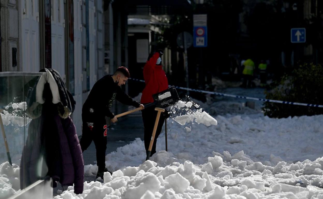 Estado de una de las calles de Madrid este jueves, seis días después de la gran nevada. AFP