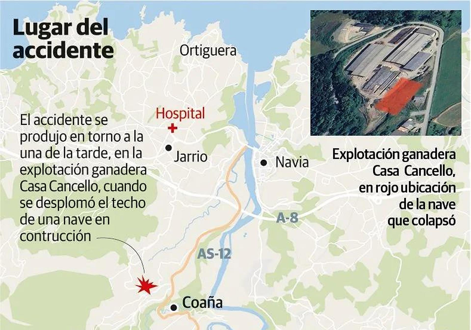 La desgracia vuelve a golpear a Asturias en forma de un terrible accidente laboral. Una nave ganadera en construcción se ha derrumbado en Coaña dejando ... a varios trabajadores atrapados en su interior. Según informa El Comercio, hay al menos tres muertos y otras tres personas se encuentran heridas de gravedad. En principio se descarta que haya personas desaparecidas.