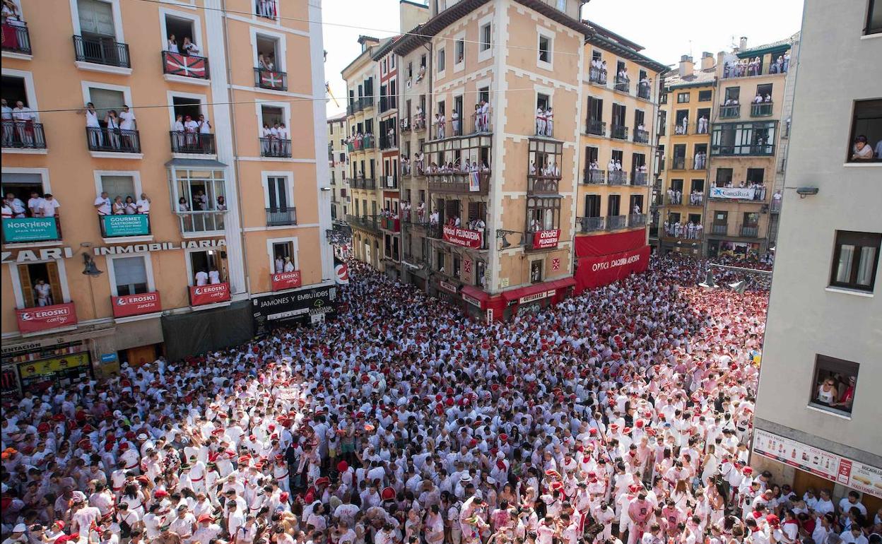 Con un sol de justicia, más de 30 grados de temperatura, y en sábado, la plaza Consistorial se encontraba llena a reventar. De hecho, para las 10:30 de la mañana ya no cabía un alma en ella. Y a partir de las 12, todo ese ambiente, toda esa alegría, se ha desparramado por el resto del centro de Pamplona y a casi todos los barrios de la ciudad.