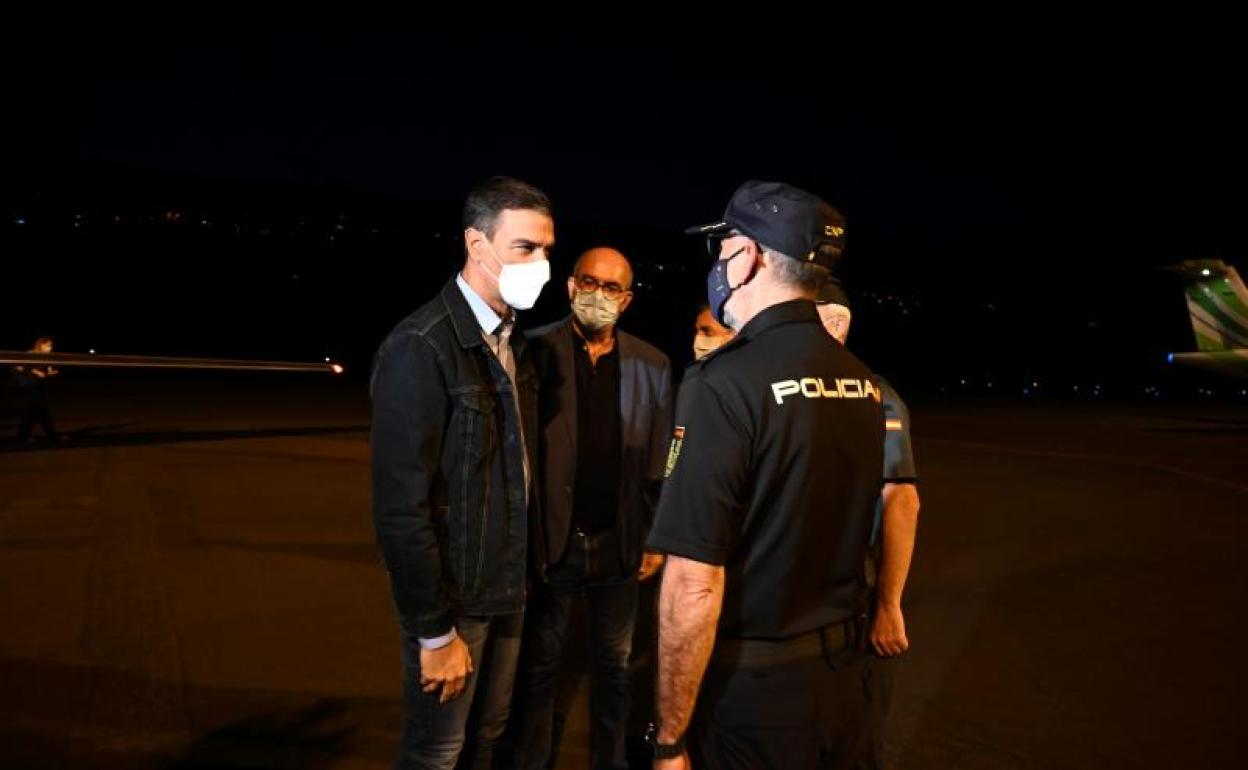 Sánchez ha señalado que las instituciones canarias y el Gobierno de España han colaborado en «un ejercicio de anticipación» para lo que «pudiera producirse» y también han transmitido «información pública a la ciudadanía para concienciarla» ante la erupción. Además, ha dicho que su «presencia compromete el apoyo del Gobierno de España para reponer todas las pérdidas materiales que se puedan producir».