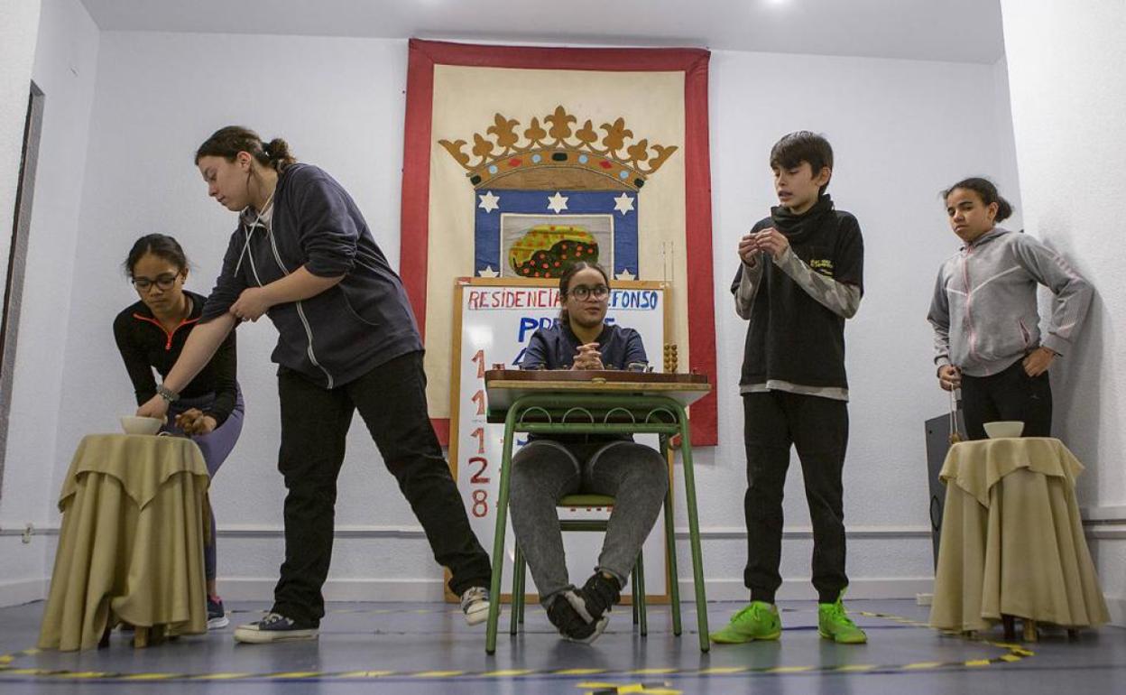 Paula, que cantó el Gordo el año pasado, entre Kiara y Luis y otros dos compañeros, en la residencia de San Ildefonso, a la que los niños llaman «La Resi». Virginia carrasco
