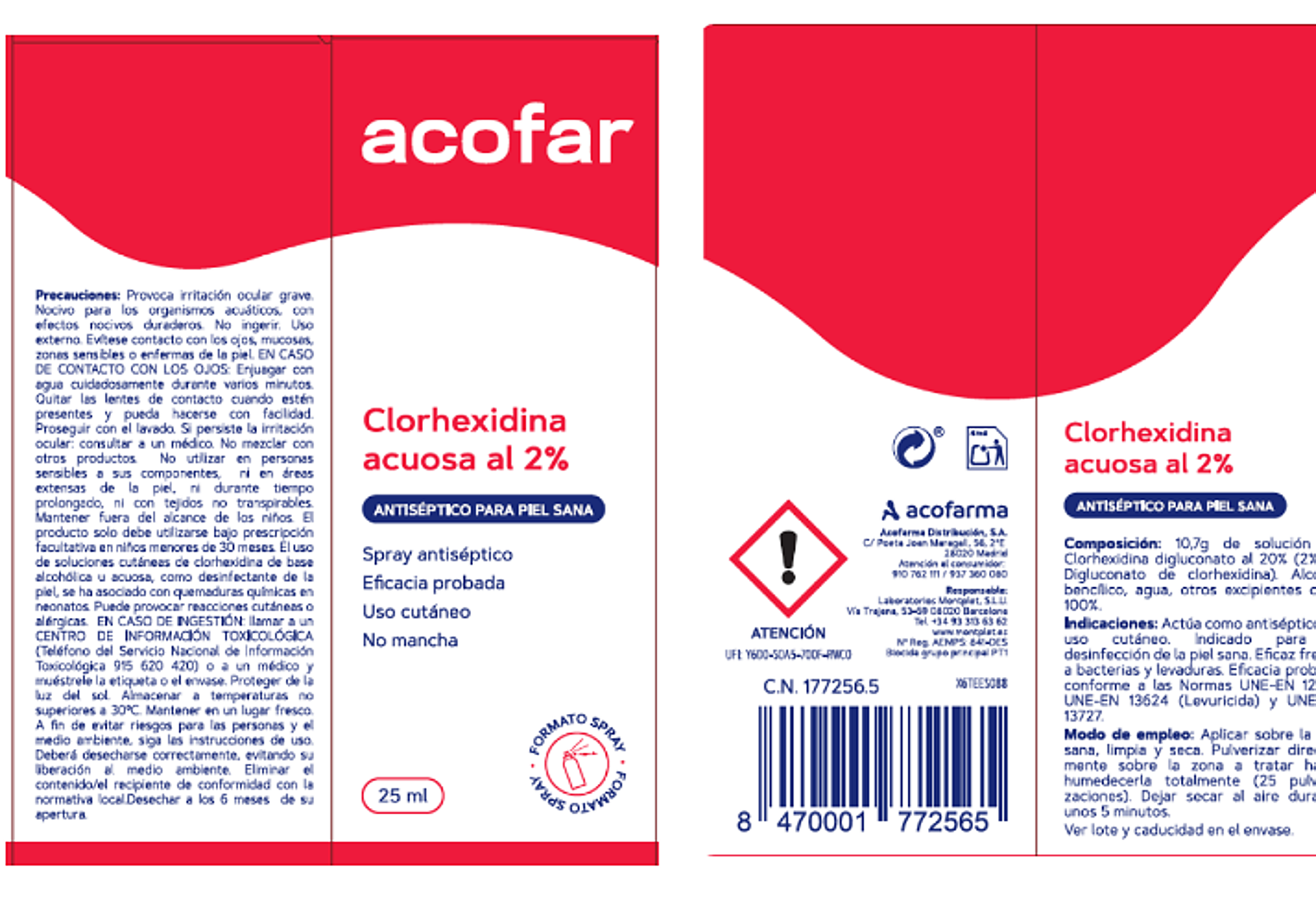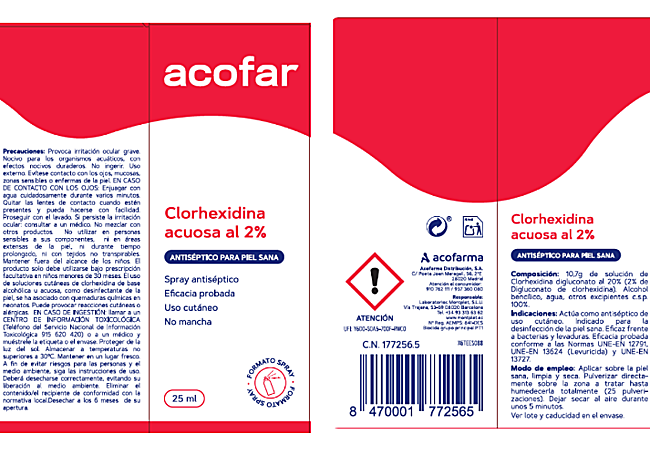Acofar clorhexidina digluconato 2% antiséptico para piel sana biocida para la higiene humana