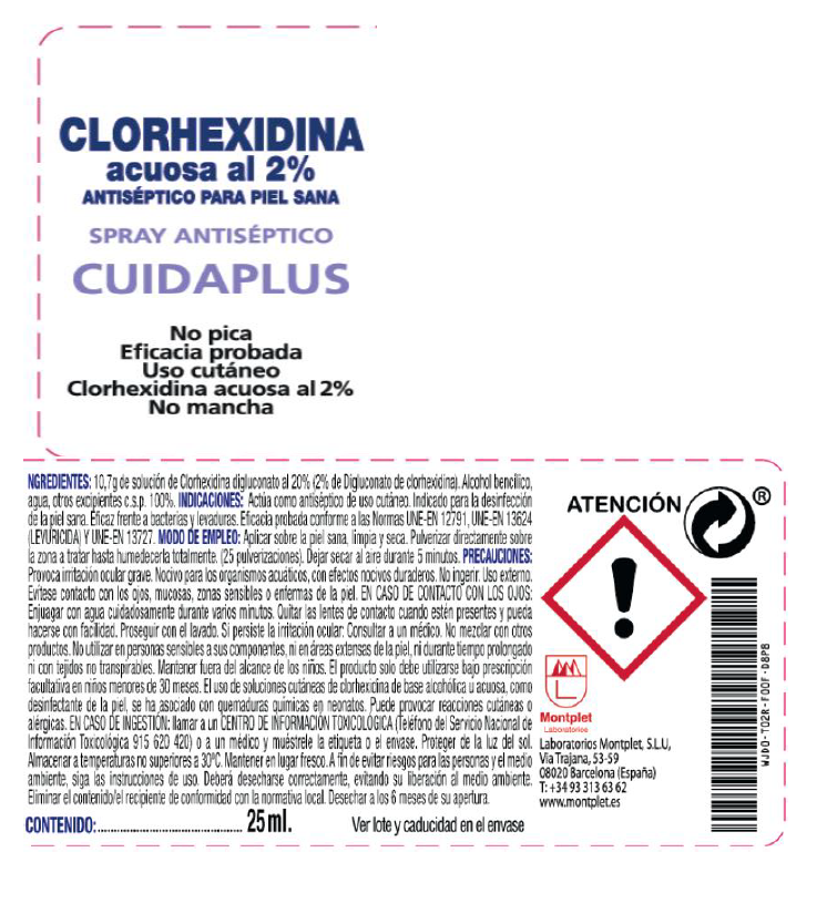 Montplet solución acuosa con clorhexidina 2% antiséptico para piel sana biocida para la higiene humana