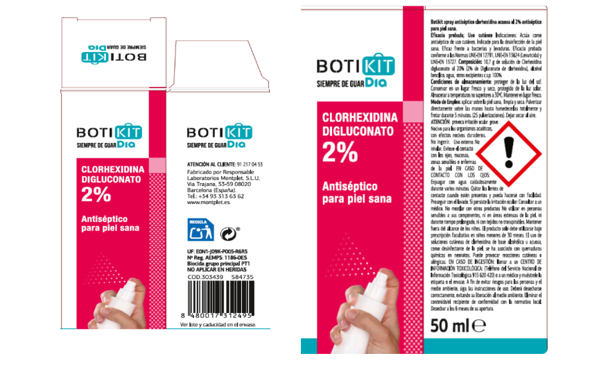 La Agencia Española de Medicamentos y Productos Sanitarios (Aemps) ha ordenado a la empresa Laboratorios Montplet el cese de la comercialización, uso y retirada de varios productos biocidas antisépticos para piel sana que se venden en supermercados y farmacias. Se trata de varios lotes de clorhexidina comercializada bajo las marcas Montplet, Eroski, Botikit (vendido en Supermercados DIA), Alvita, Cuidaplus, Interapothek, Notaderm y Acofar.
