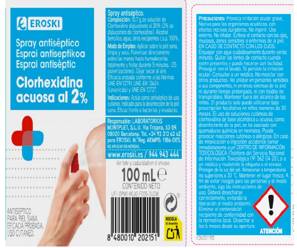 Eroski spray clorhexidina acuosa al 2% antiséptico para piel sana