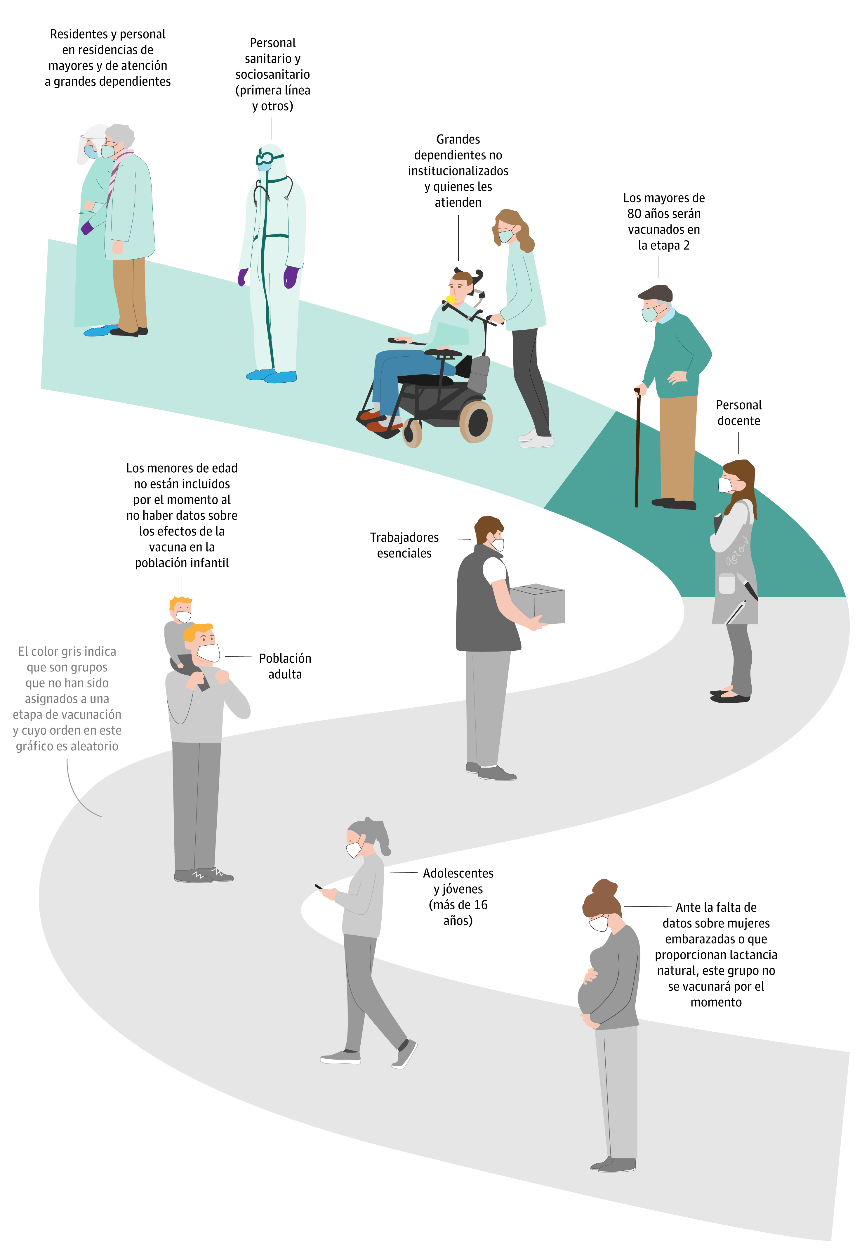 Así que si bien ya hay algunos grupos cuya vacunación se está realizando o ya se conoce cuándo se llevará a cabo (el último anuncio del Gobierno fue la inclusión de los mayores de 80 años en la etapa 2), hay otros que se preguntan: «¿Y cuándo me tocará a mí?».