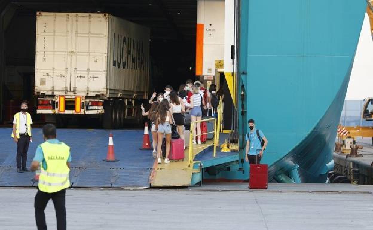 Estudiantes embarcando en el ferry que les trasladó a Mallorca el pasado 11 de junio. J. SIGNES / Atlas