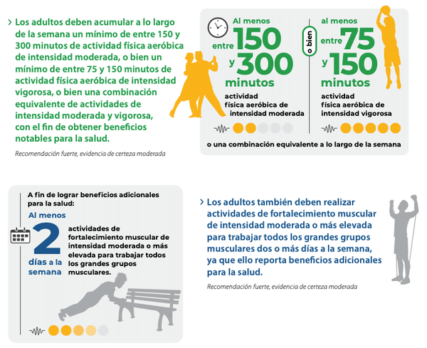 Las directrices de la Organización Mundial de la Salud sobre actividad física y hábitos sedentarios se han actualizado recientemente. En ellas, al margen de recomendar el ejercicio de carácter aeróbico, se aconseja ahora también a la población adulta un trabajo de fuerza muscular para obtener beneficios adicionales. Este ejercicio debe realizarse, como mínimo, dos días a la semana.
