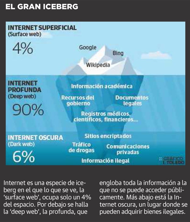 Internet es una especie de iceberg en el que lo que se ve, la 'surface web', ocupa solo un 4% del espacio.