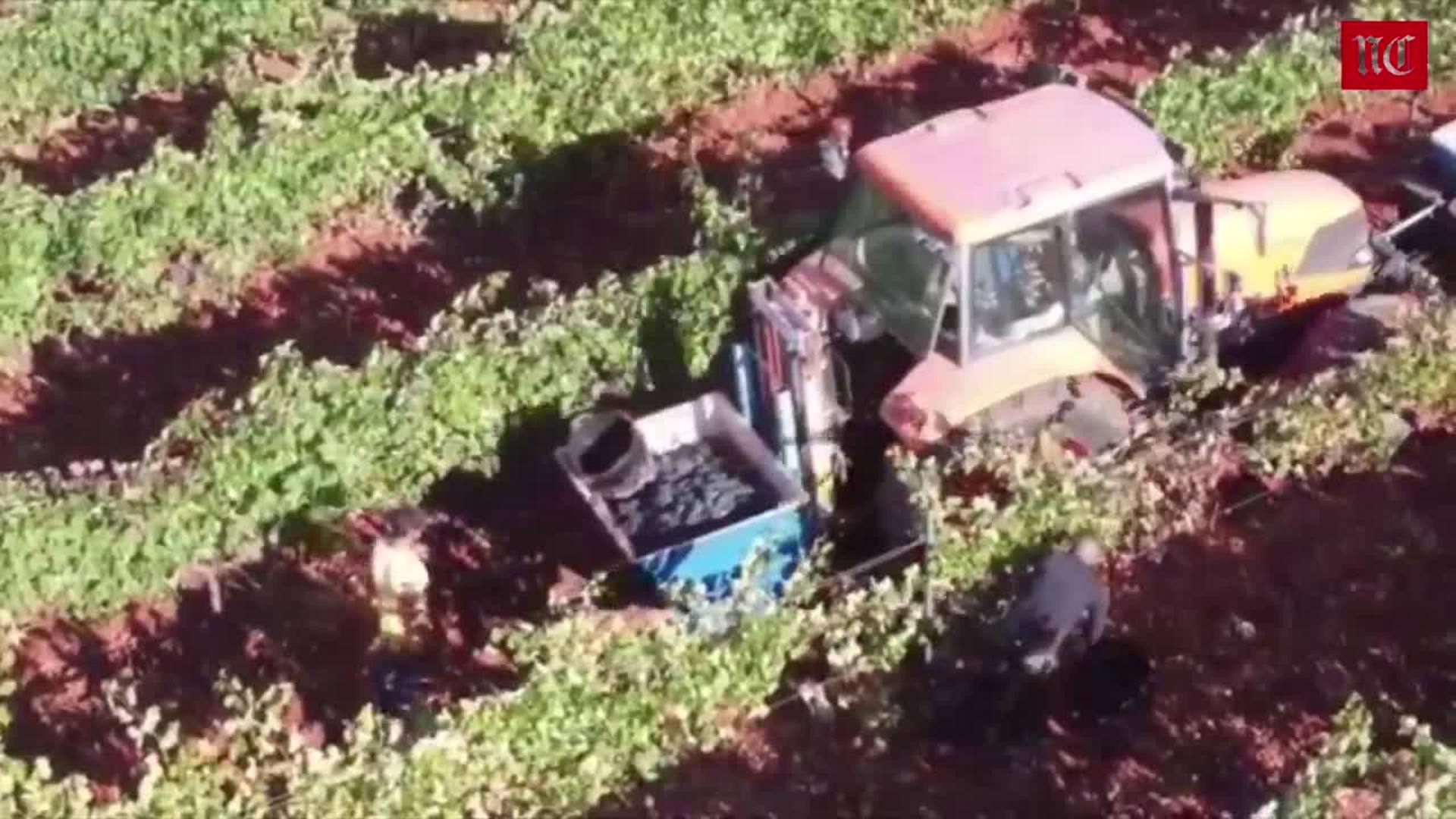 El viticultor Nacho Rincón muestra un recorrido visual con imágenes aéreas de las labores de recogida de uva