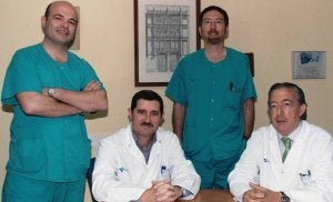 El profesor Clemente Muriel Villoria, catedrático de Anestesiología; Pablo Alonso Hernández y Felipe Hernández Zaballos, del Servicio de Anestesiología y Reanimación y Terapia del Dolor del Hospital Universitario de Salamanca, y Juan Juanes Méndez, del Departamento de Anatomía Humana de la Facultad de Medicina han desarrollado un instrumento que contará con una enorme potencialidad para la formación del personal sanitario.