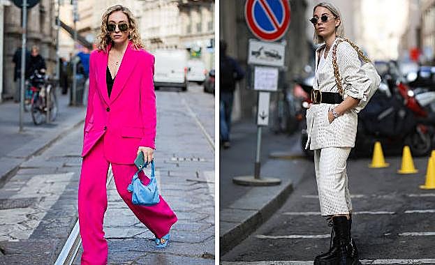 Utiliza los trajes de chaqueta estampados de sastre; combínalos con camisa abierta sobre un top de algodón -o sin ningún top para encontrar un toque más sexy-; enterizos y de colores vivos e incluso, combinando chaqueta y pantalón en distintos tonos y conseguirás ser la estrella del 'street style'.