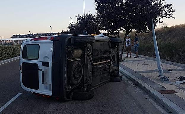 Un vehículo ha volcado alrededor de las 21.20 horas de esta tarde en la calle Ramón y Cajal de Arroyo de la Encomienda, una de las vías de acceso a Ikea y a unos 400 metros antes del colegio Kántica.