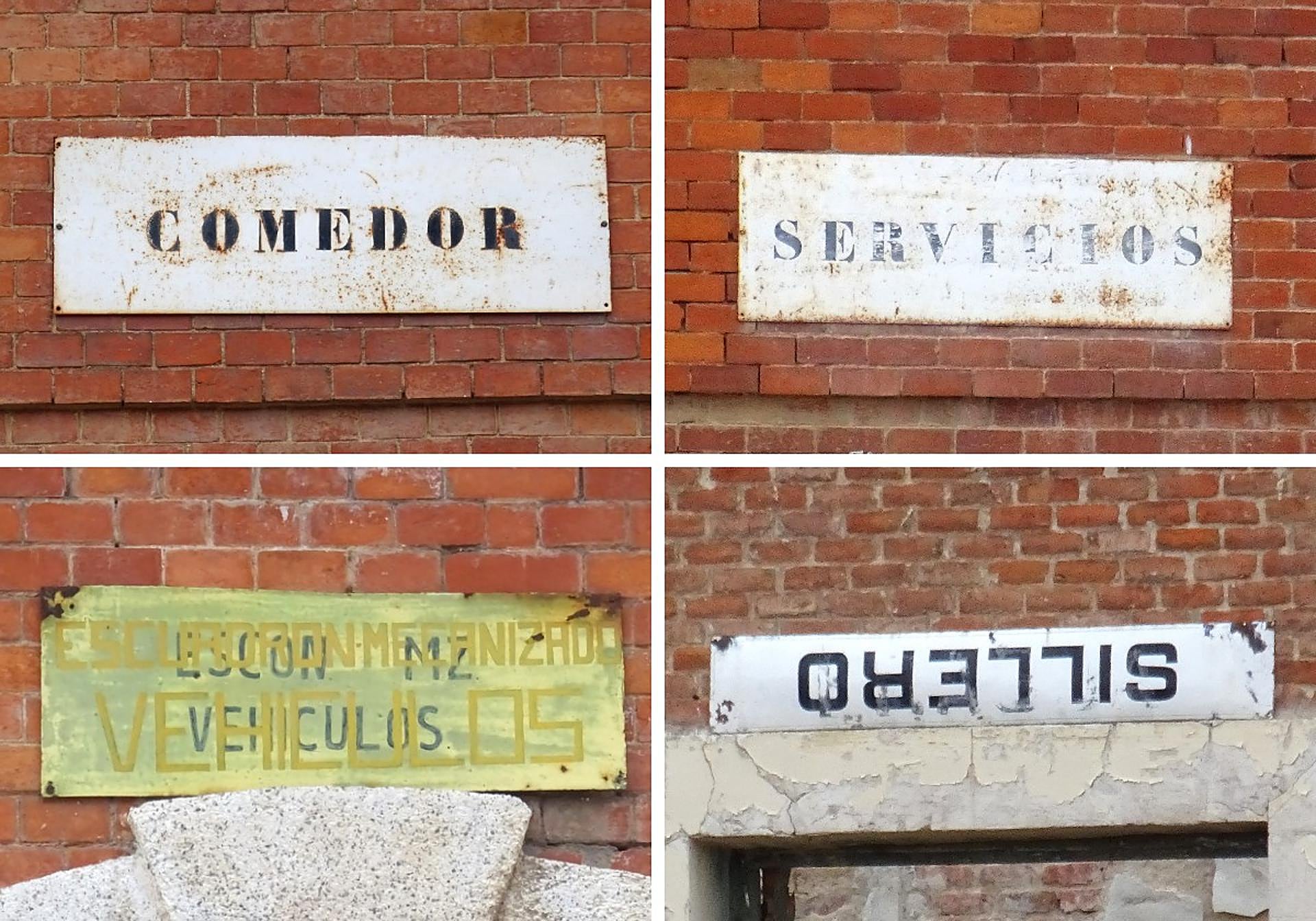 Las edificaciones castrenses, como curiosidad, muestran todavía numerosos carteles sobre sus puertas tabicadas (hasta que se rehabiliten y para evitar riesgos innecesario dado su estado) que delatan su pasado como recinto de caballería. Así, al margen del taller del segundo escalón de mantenimiento, cuya entrada y letreros se han conservado e integrado en el lateral de la Escuela Superior de Diseño durante la rehabilitación, aún se pueden leer en distintas placas un tanto oxidadas los usos que recibían algunos de sus inmuebles: el 'comedor', el 'cuartel general', los 'servicios', la sede del 'escuadrón de mecanizado de vehículos' e, incluso, el taller de 'sillero'. Este último se deduce que en alusión al uso de caballos, y mantenimiento de sus monturas, del histórico regimiento de Farnesio, el más antiguo del Ejército (fundado en Flandes en 1649).