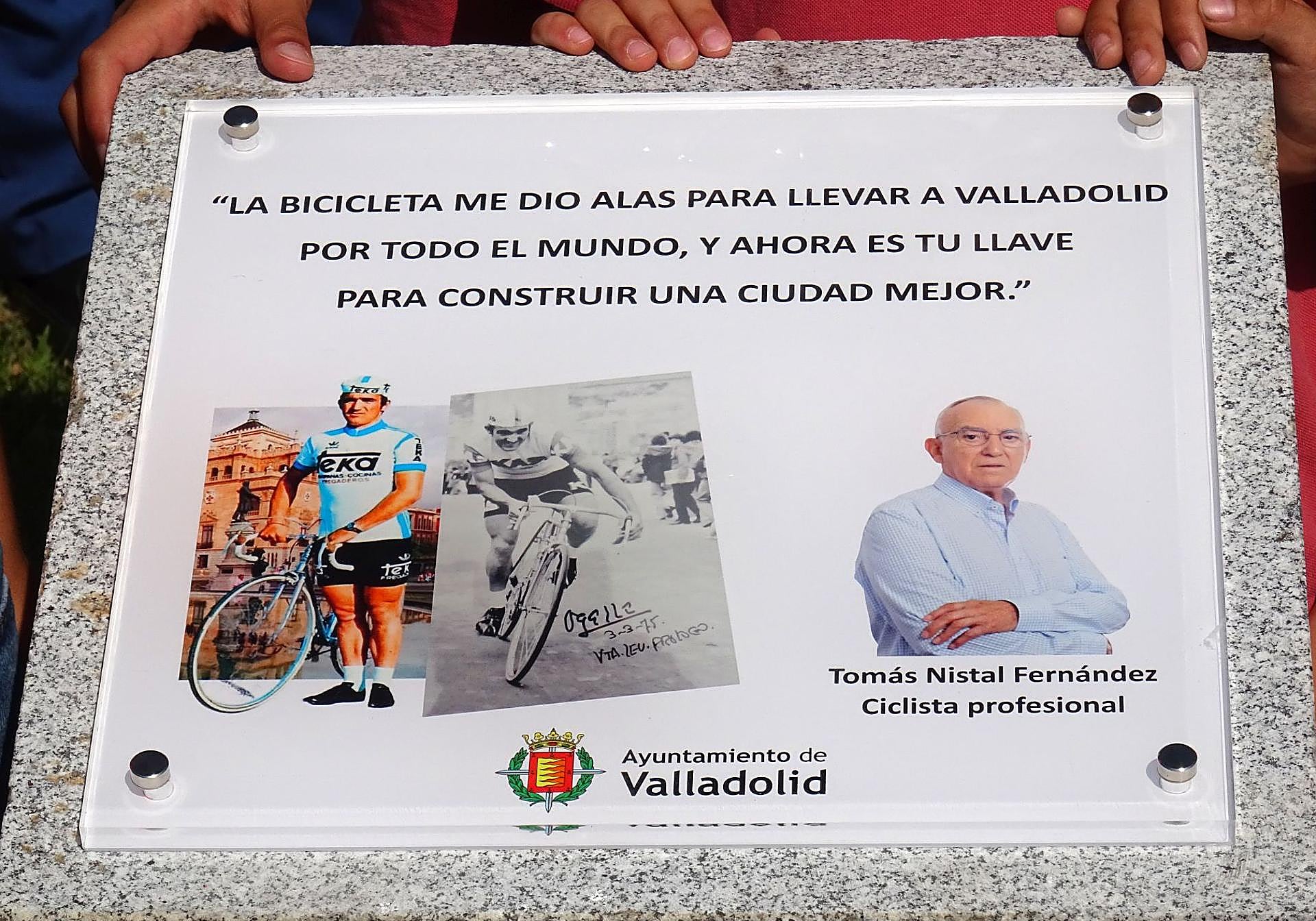«Es un homenaje merecido que le debía la ciudad a un corredor que fue ciclista profesional y director deportivo e impulsor del ciclismo amateur», ha reseñado el regidor antes de incidir en que Tomás Nistal es, además, «un hombre que destaca por su talante y generosidad» y de glosar algunas de sus hazañas, como la que le llevó a ganar al mismísmo 'caníbal' Eddy Mercks durante una etapa en los años setenta o la que le llevó a ser el único vallisoletano que participó en la carrera en ruta de las olimpiadas de Munich en 1972.