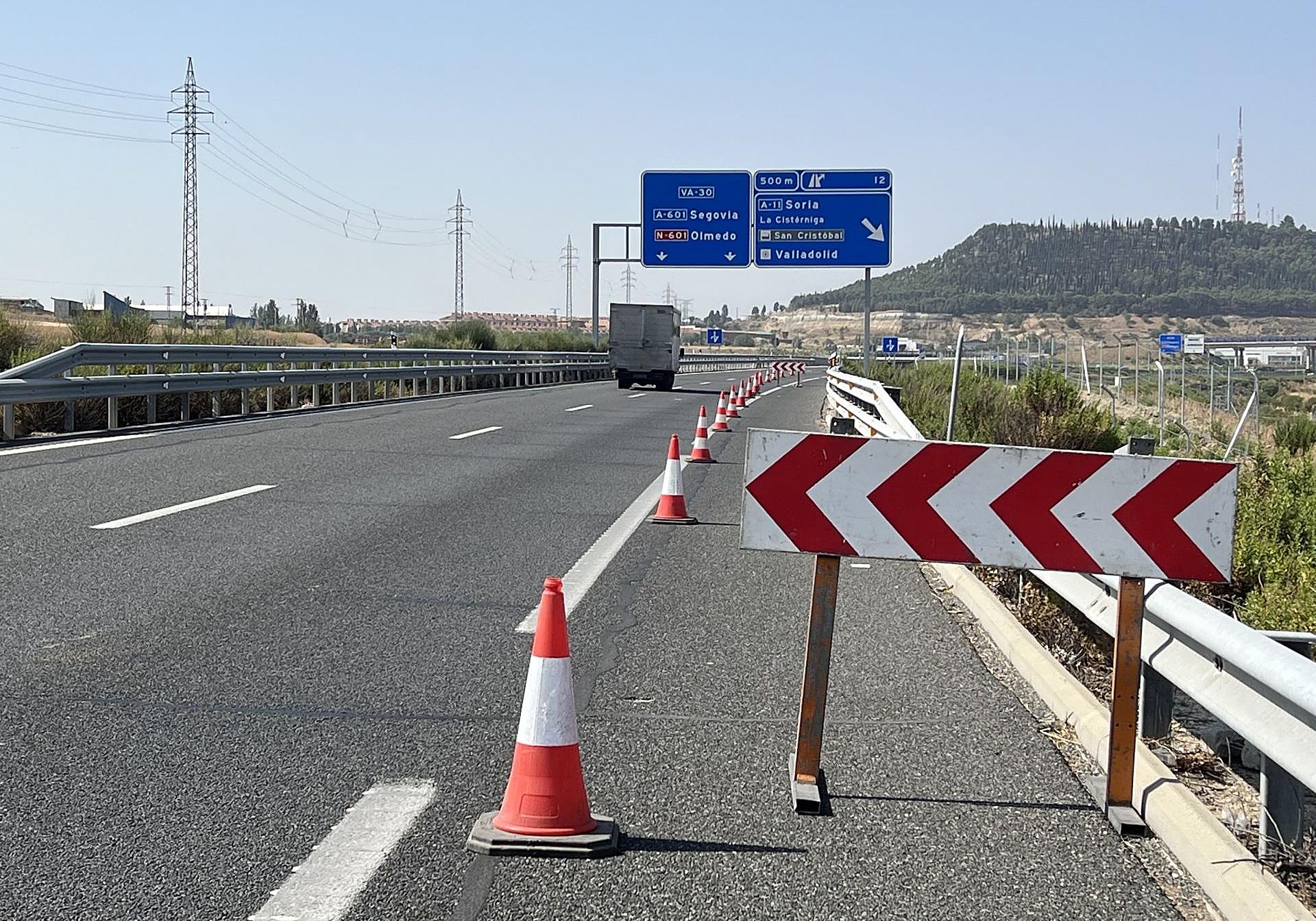 El Ministerio de Transportes ha iniciado esta semana la sustitución de las juntas en los viaductos que jalonan esta carretera, de casi 22 kilómetros. Los trabajos se centraron el lunes en el puente sobre el río Esgueva. Este jueves se ejecutaron en los viaductos que permiten salvar el polígono de San Cristóbal y la carretera de Segovia. En ambos casos, en dirección hacia Tordesillas. Y en ambos casos, ha sido necesario cortar al tráfico un carril de circulación, señalizado con pivotes rojos para regular el paso de los vehículos, que han tenido que circular en fila india durante gran parte de la jornada.
