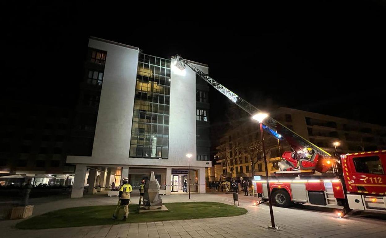Los Bomberos han retirado, poco antes de las 20:00 horas, una losa que amenazaba con caerse en la plaza Juan Pablo II de Valladolid. La placa se encontraba en el quinto piso y los efectivos desplegados necesitaron usar una escala para llevar a cabo el trabajo.