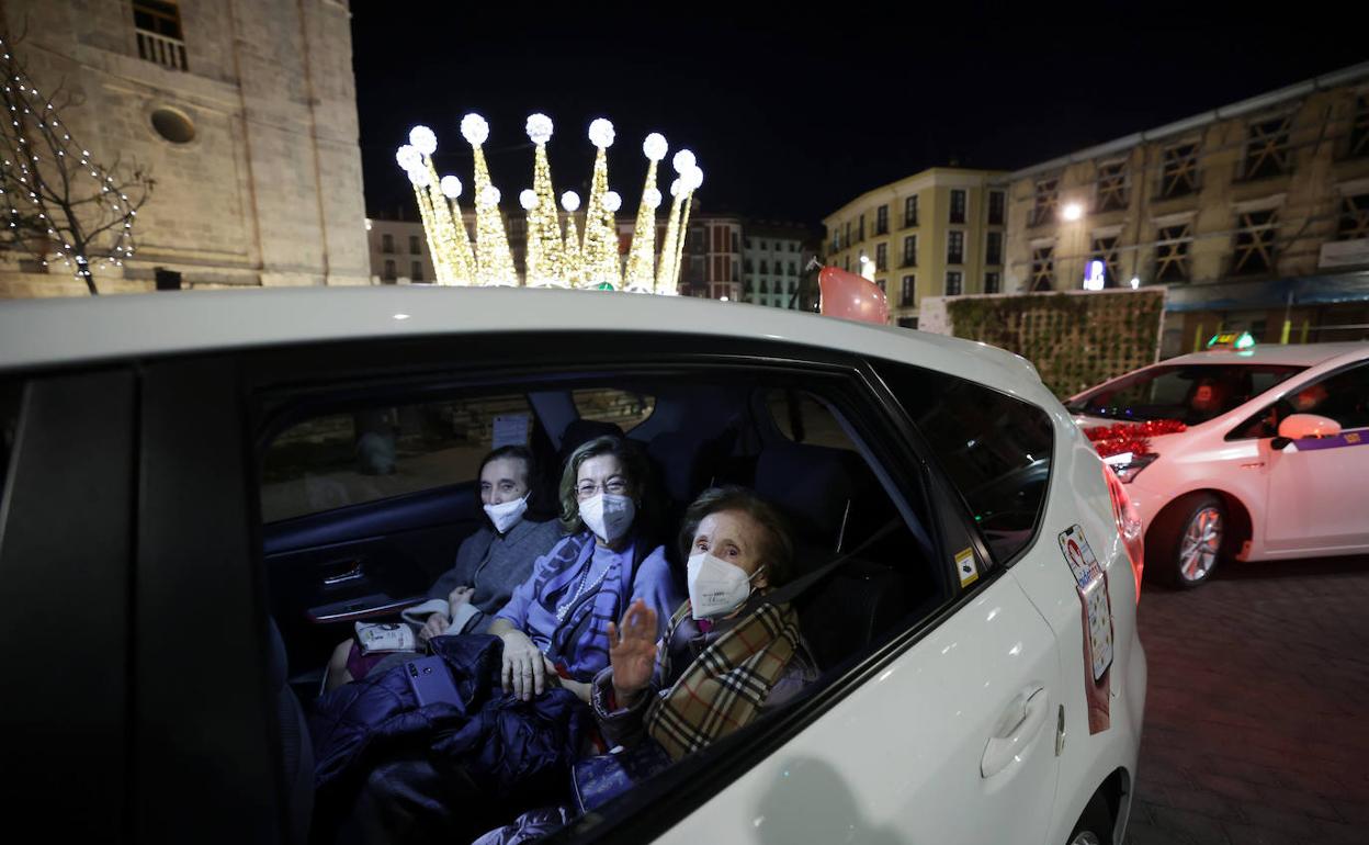 Los ojos de Primitiva Molinero reflejaron la noche del miércoles el brillo de las miles de bombillas que iluminan las calles del centro de Valladolid ... esta Navidad. Esta mujer de 96 años y natural de Castillo de Duero nunca había visto la ciudad por la noche y su primera vez ha sido con las luces encendidas. «No me ha podido gustar más, es algo que no se ve todos los días», reconocía. Ella, junto con otros ancianos que viven en residencias, se montaron en los más de cuarenta taxis que la Asociación Radiotaxi dispuso para que, en palabras de su presidente Alberto Romo, «pudieran disfrutar de la magia de la Navidad y devolverles, de alguna forma, la ilusión». En el interior de los vehículos, los jubilados lanzaban sus conjeturas sobre los colores que predominarían en las principales calles de la ciudad.