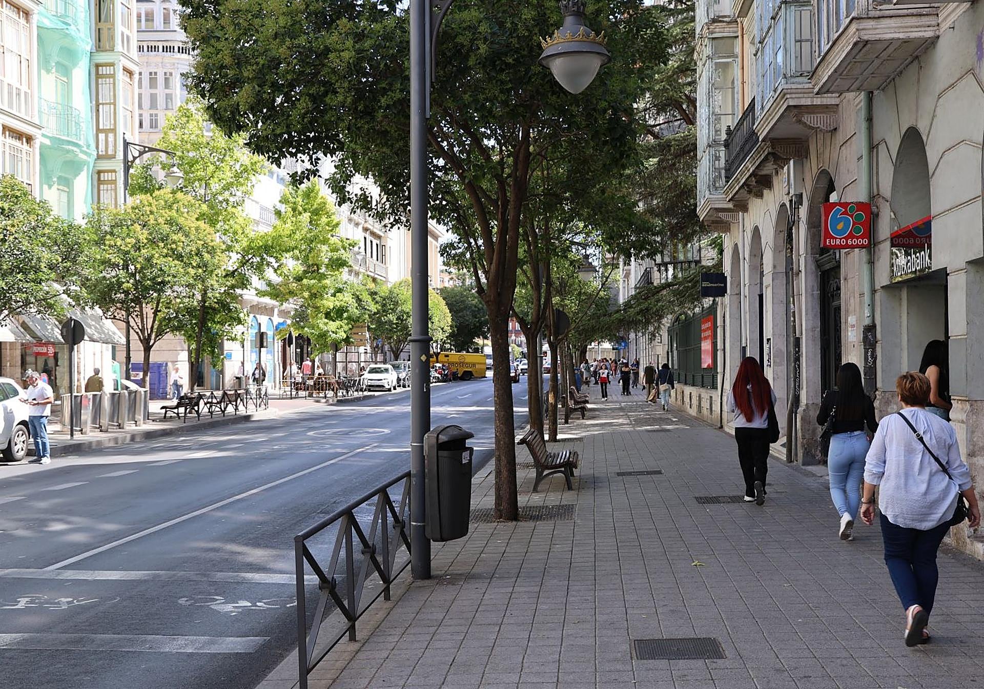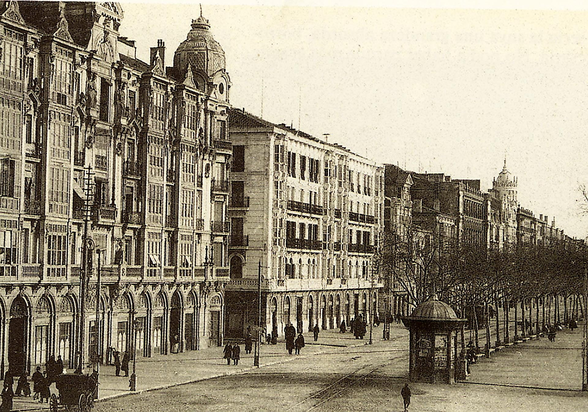 Pero su historia se remonta siglos atrás. En sus orígenes fue un espacio extramuros ocupado por conventos e instituciones religiosas, como el de los recoletos agustinos, o los franciscanos, todos desamortizados o derribados entre los siglos XIX y XX. Con la expansión urbana y el auge de la burguesía, esta vía se transformó en una codiciada zona residencial donde surgieron edificios señoriales como la Casa Mantilla, la Casa Resines o la Casa del Príncipe, inmuebles muy valorados que aún hoy conservan detalles únicos, desde figuras mitológicas en sus balcones hasta placas que recuerdan a ilustres como Miguel Delibes, nacido en el número 12.