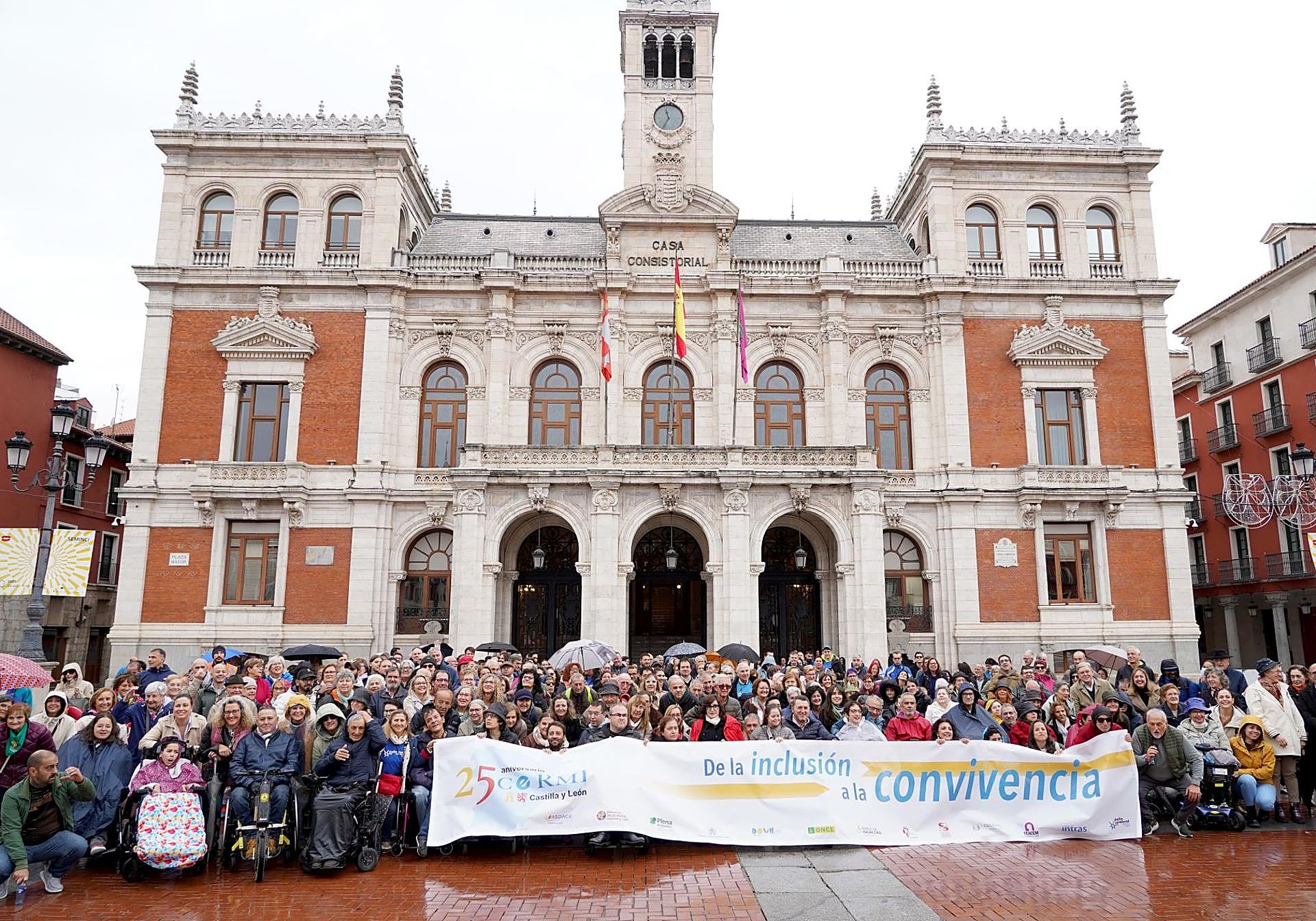 En el acto que festejó el aniversario en la Plaza Mayor vallisoletana, pasado por agua en una mañana lluviosa, participó el alcalde de la ciudad, Jesús Julio Carnero, que destacó que Cermi puede celebrar el éxito de haberse convertido en una entidad que representa y defiende en Castilla y León los intereses de las personas con discapacidad.