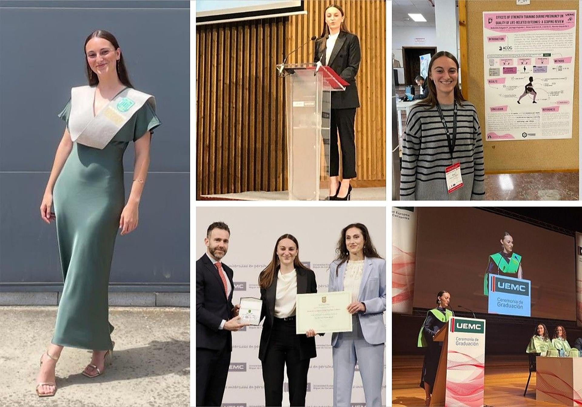 Sus investigaciones para el TFG le valieron una Matrícula de Honor, eso le dio el aliciente para querer ampliar sus estudios con un máster y posteriormente con el doctorado de Innovación, Investigación en Actividad Física y Poblaciones Especiales. Ha escrito diversos artículos científicos en importantes revistas del campo de la salud, ha participado en diferentes congresos nacionales e internacionales, incluida una mención honorífica en Brasil, méritos, todos ellos, que la sitúan en el mapa investigador. De hecho, desde 2022 pertenece al grupo de investigación i+HeALTH de la UEMC.