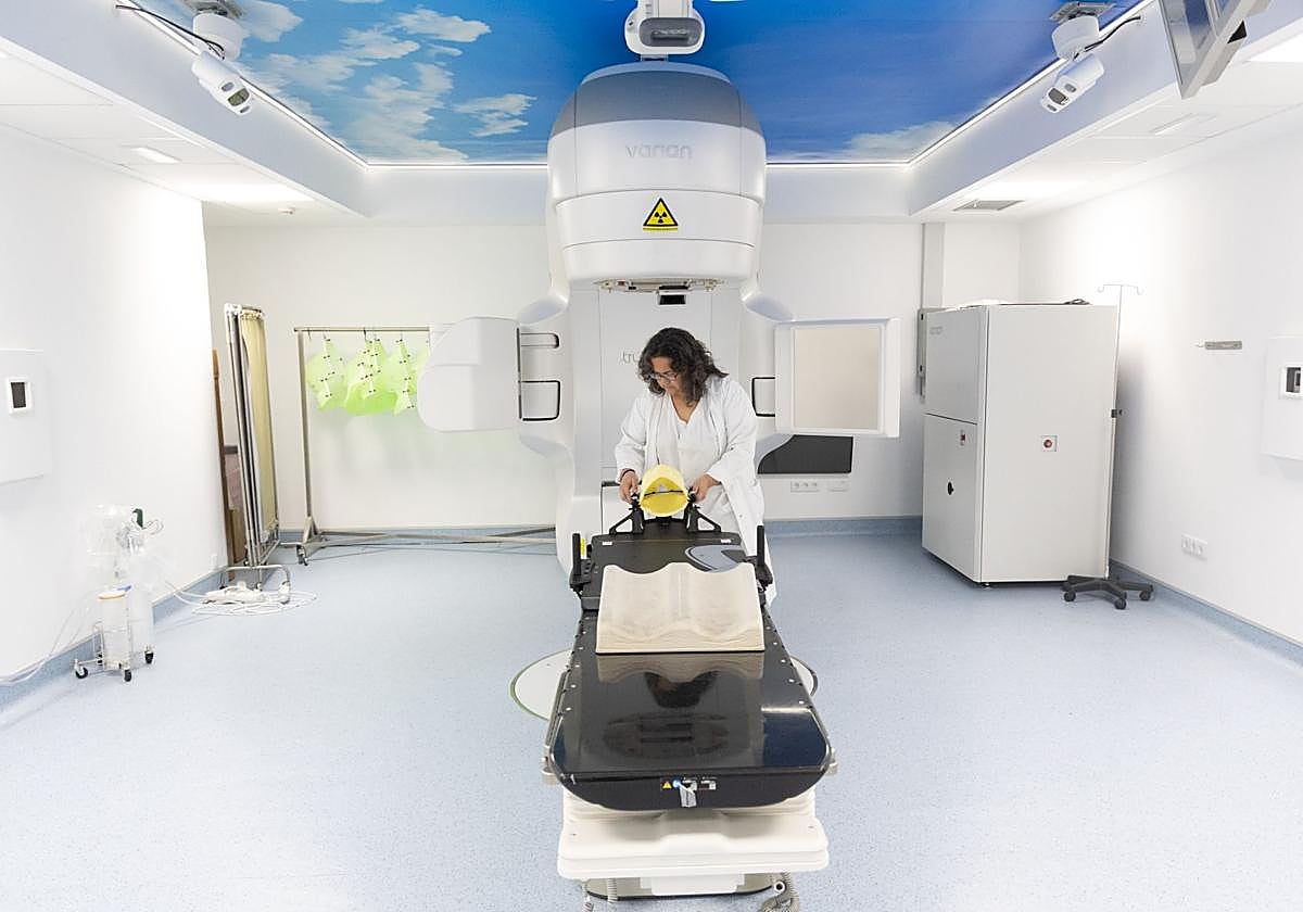 «Tenemos muchísima más precisión, porque pasamos de manejar técnicas al milímetro a desarrollar precisiones submilimétricas, tanto desde el punto de vista de la dosis, como desde el geométrico, de gestionar el movimiento del paciente», señala Ángel del Castillo Belmonte, especialista del Servicio de Radiofísica y Protección Radiológica, que destaca que han afinado el sistema de inmovilización de la persona tratada en el acelerador lineal, de manera que verifican y monitorizan al paciente para detectar el mínimo movimiento y aplicar correcciones que permiten garantizar la precisición de la radiación.