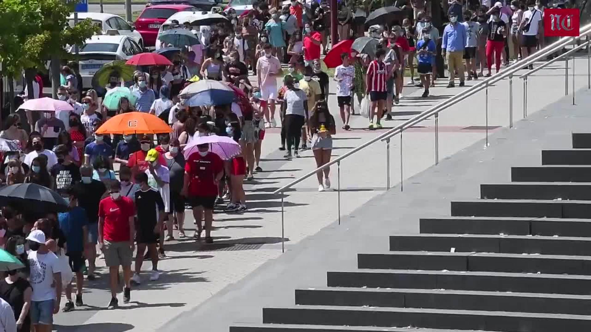Colas de vacunación contra la covid en Valladolid bajo un intenso calor