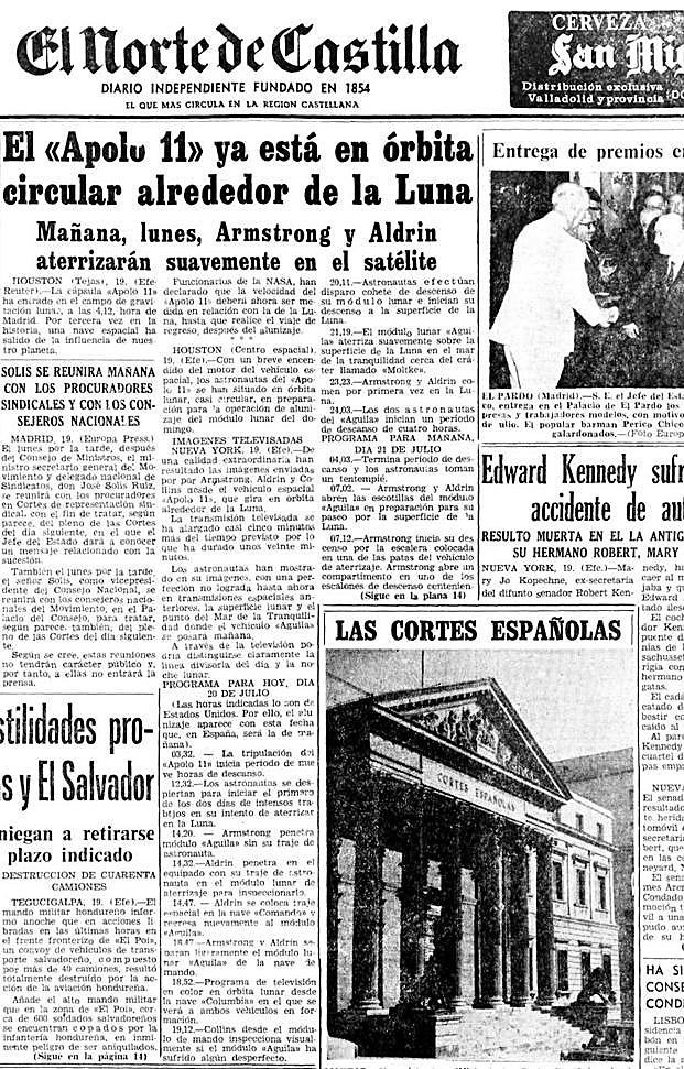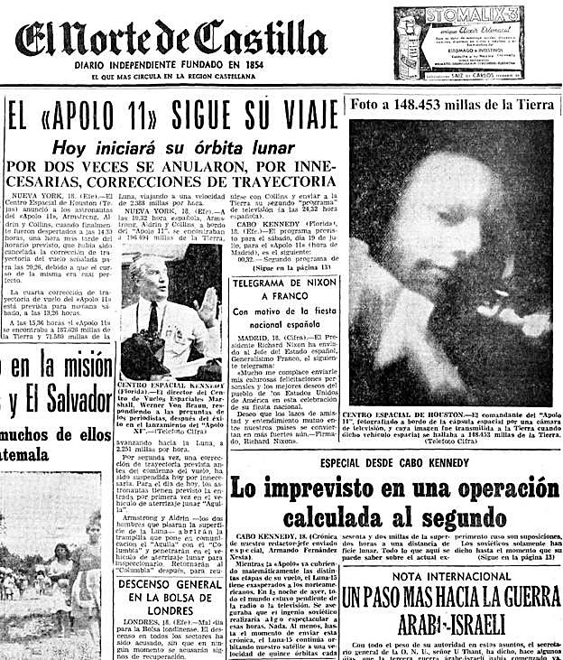 El domingo 20 de julio de 1969, El Norte anticipaba los preparativos del alunizaje. «Por tercera vez en la historia, una nave espacial ha salido de la influencia de nuestro planeta. Funcionarios de la NASA han declarado que la velocidad del Apolo 11 deberá ahora ser medida en relación con la de la Luna, hasta que realice el viaje de regreso, después del alunizaje». Además, el Norte recogía «la calidad extraordinaria» de las imágenes enviadas por Armstrong, Aldrin y Collins desde el vehículo espacial. «Los astronautas han mostrado con una perfección no lograda hasta ahora la superficie lunar y el punto del Mar de la Tranquilidad donde se posará el vehículo 'Aguila'».