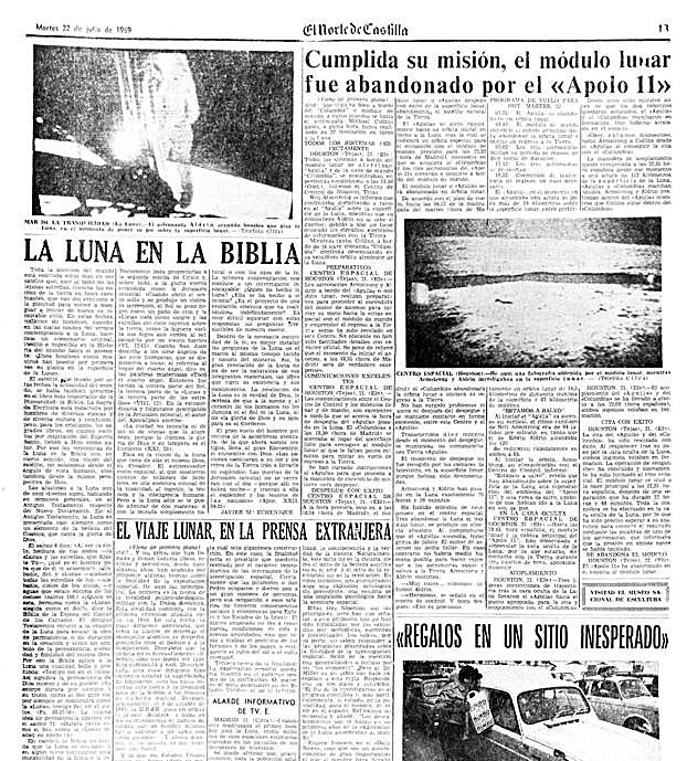 Bajo las imágenes de Neil Armstrong y Edwin 'Buzz' Aldrin pisando la Luna por primera vez, El Norte publicó el artículo 'El viaje lunar, en la prensa extranjera', con las firmas del escritor estadounidense John Dos Passos y del italiano Alberto Moravia. «La tecnología que se ha desarrollado para llevar a cabo el programa Apolo puede ser considerada como un patrimonio disponible para la solución de centenares de problemas diversos», consideraba Dos Passos. Moravia apuntaba a la colisión entre Estados Unidos y la URSS: «La tecnología espacial, como la investigación científica termonuclear no será más que en un medio de llegar a la hegemonía en el plano mundial». En otro artículo, firmado por Javier M. Echenique, se analizaba las alusiones a la Luna que aparecen en la Biblia.