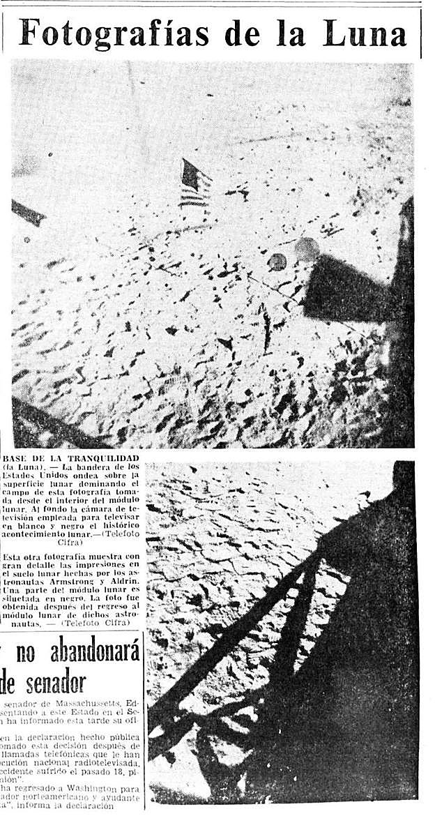 Con los astronautas aún en cuarentena, El Norte publicó el jueves 31 de julio dos de las fotografías tomadas desde el interior del módulo lunar durante las horas que Neil Armstrong y Buzz Aldrin permanecieron en la Luna. En una de ellas, se veía la bandera de Estados Unidos, que costó fijar por la dureza del terreno. La enseña de las barras y estrellas se cayó al suelo en cuanto los astronautas encendieron el motor y dejaron la superficie lunar. La historia coronó a Armstrong como el primer hombre en pisar la Luna, algo que no gustó demasiado a Aldrin, que confiaba en haber sido el elegido. Armstrong tomó fotos de Aldrin posando en la Luna, pero Aldrin no hizo ninguna de su compañero. Una de las pocas imágenes en las que se ve a Armstrong sobre la superficie lunar la tomó él mismo... en el reflejo del casco de Aldrin. Como escribió Rivka Galchen en 'The New Yorker' el pasado 6 de mayo: «Somos mezquinos y nos portamos mal en la Tierra; seremos mezquinos y nos portaremos mal en el espacio».