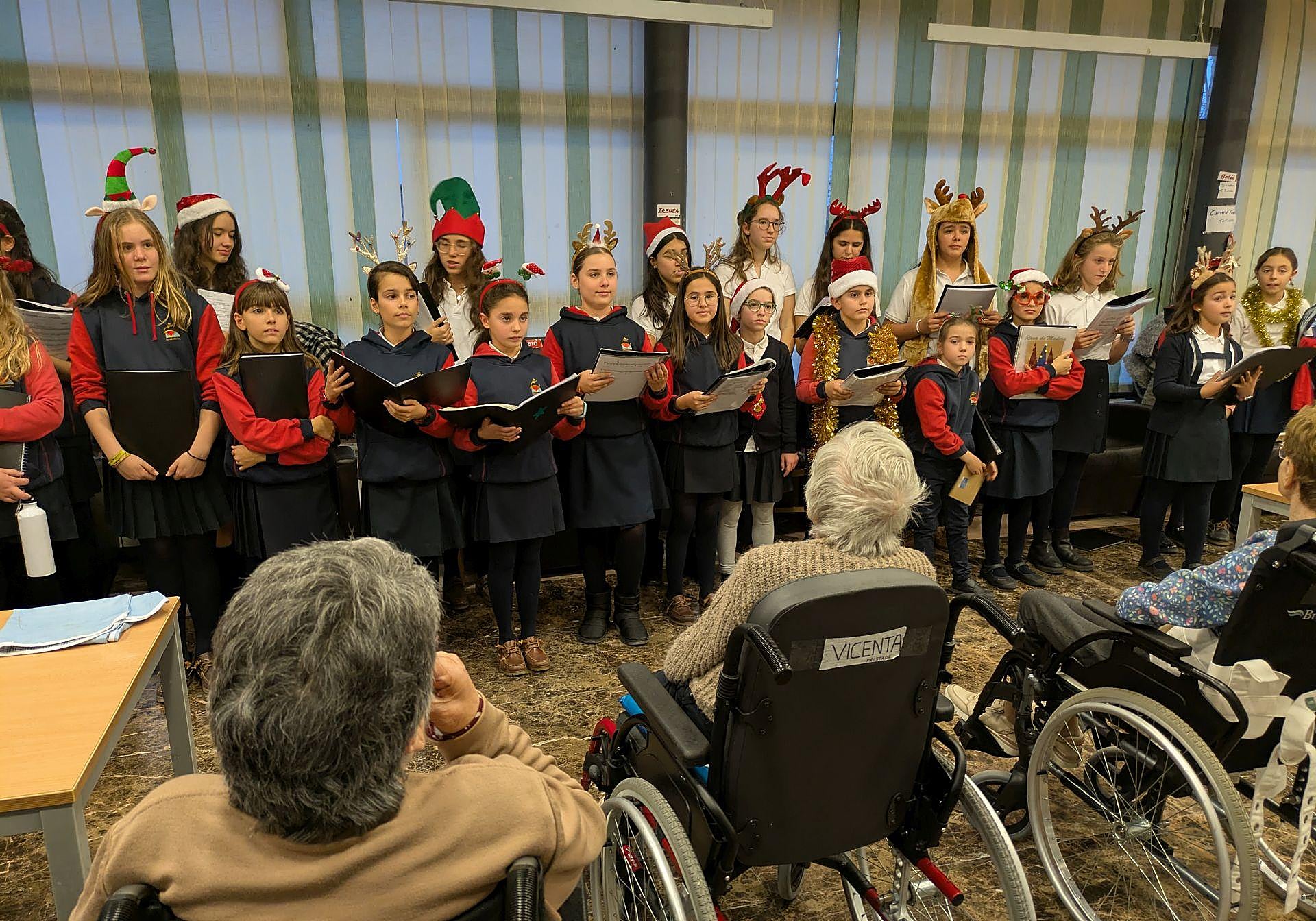 Esta iniciativa, organizada por el colegio Corazonistas, tiene como objetivo sensibilizar a los alumnos sobre la importancia de acompañar y valorar a las personas mayores, especialmente en la etapa final de sus vidas. «Nuestro deseo es que nuestros alumnos tomen conciencia de la necesidad que tienen las personas mayores de sentirse queridas y acompañadas en la etapa final de sus vidas y qué mejor manera que llevarles unas canciones que les recuerde la venida de Jesús», señalan desde el centro educativo. «Queríamos hacer una actividad de voluntariado y nos pareció una muy buena idea venir a la residencia a alegrar a los mayores», completa la directora del coro y profesora de música Gaia Gómez.