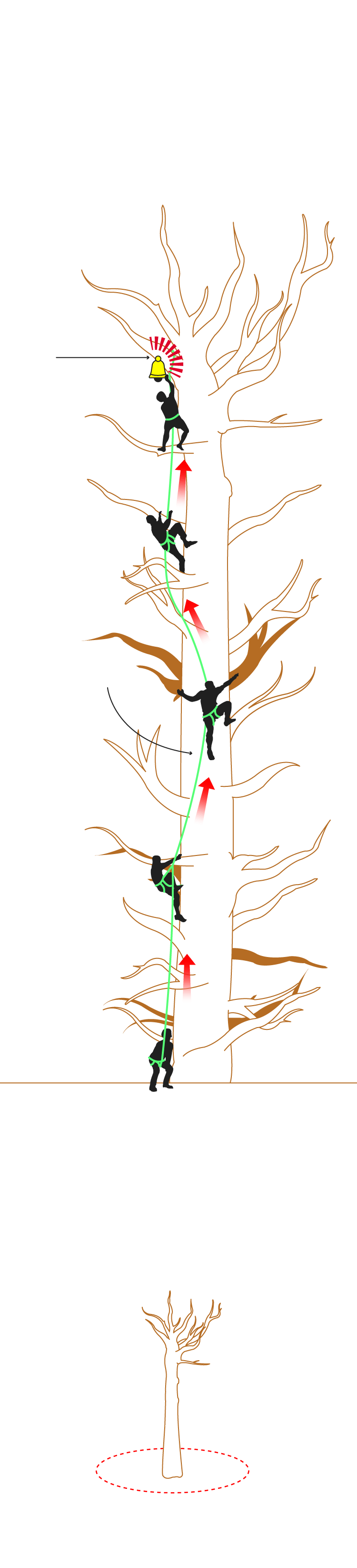 Parte de una estación en el árbol y debe visitar otras cinco, situadas en diferentes puntos, y que tienen una campana que el trepador debe hacer sonar.