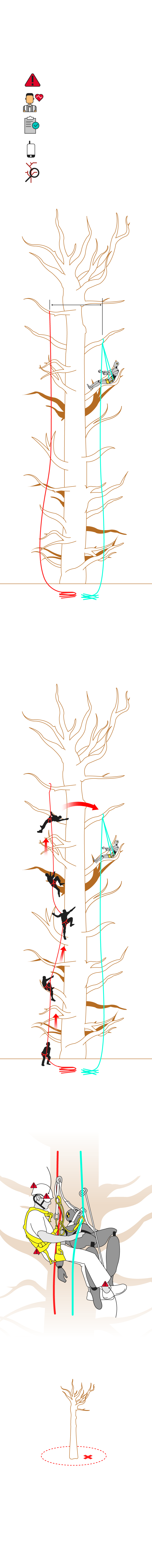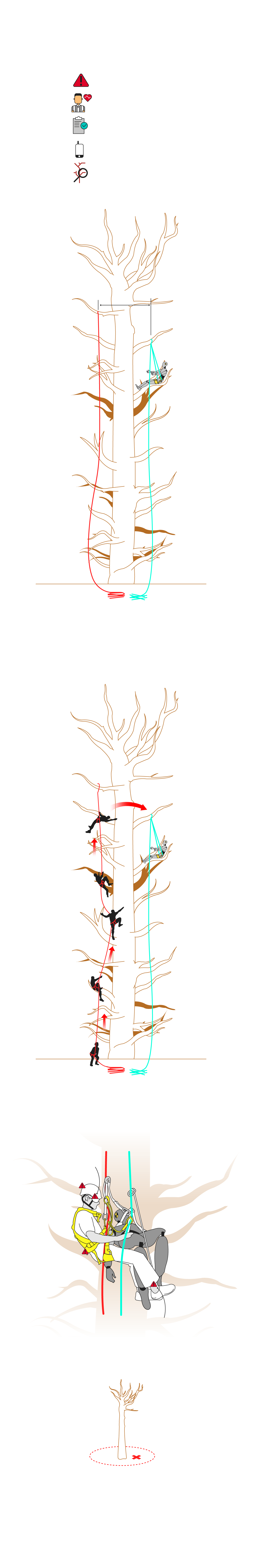 Como en todas las pruebas, la zona de trabajo está delimitada en torno al árbol en el que se compite y todo lo relacionado con la prueba debe realizarse dentro del perímetro.