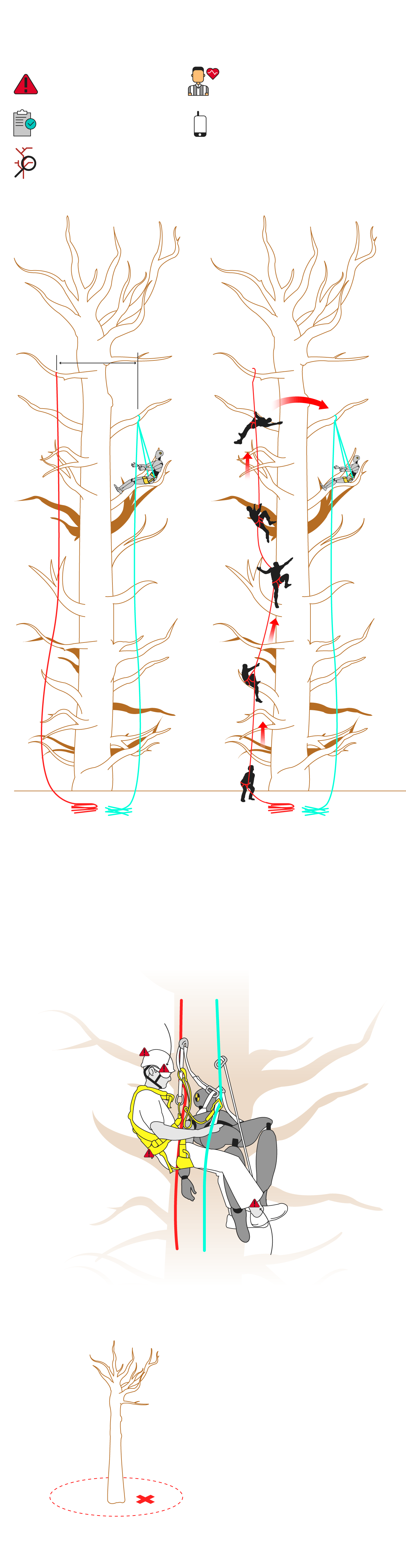 Deberá llevar casco, protección ocular, arnés de trepa, eslinga de posicionamiento para evitar caídas y calzado apropiado y serrucho con dientes protegidos.