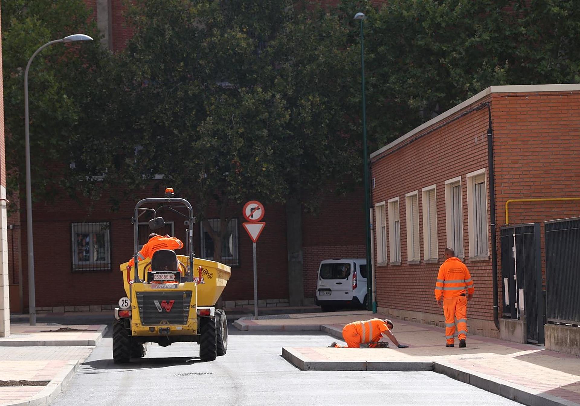 Frente a las que todavía están terminando, o que continuarán con los últimos detalles para los primeros compases del curso, también están las que ya han terminado. Sucede por ejemplo en la plaza de San Juan, cuya peatonalización se enmarcaba dentro de los entornos escolares seguros por su cercanía con el colegio San José. La actuación consistió en la eliminación de la calzada, en el tramo de carretera de treinta metros que conectaba con Don Sancho. La nueva zona para los viandantes ya está abierta a falta de pintar al nuevo paso peatonal en la calle de los Reyes, que permanece intacta tras la intervención, y de la instalación de nuevos bancos. La intervención, que en este sentido ya mejora el entorno, se completará con la llegada de la arquería del antiguo claustro del convento de la Merced Descalza, que se conserva en la finca particular de Los Quemadillos, donde todavía permanece intacta.