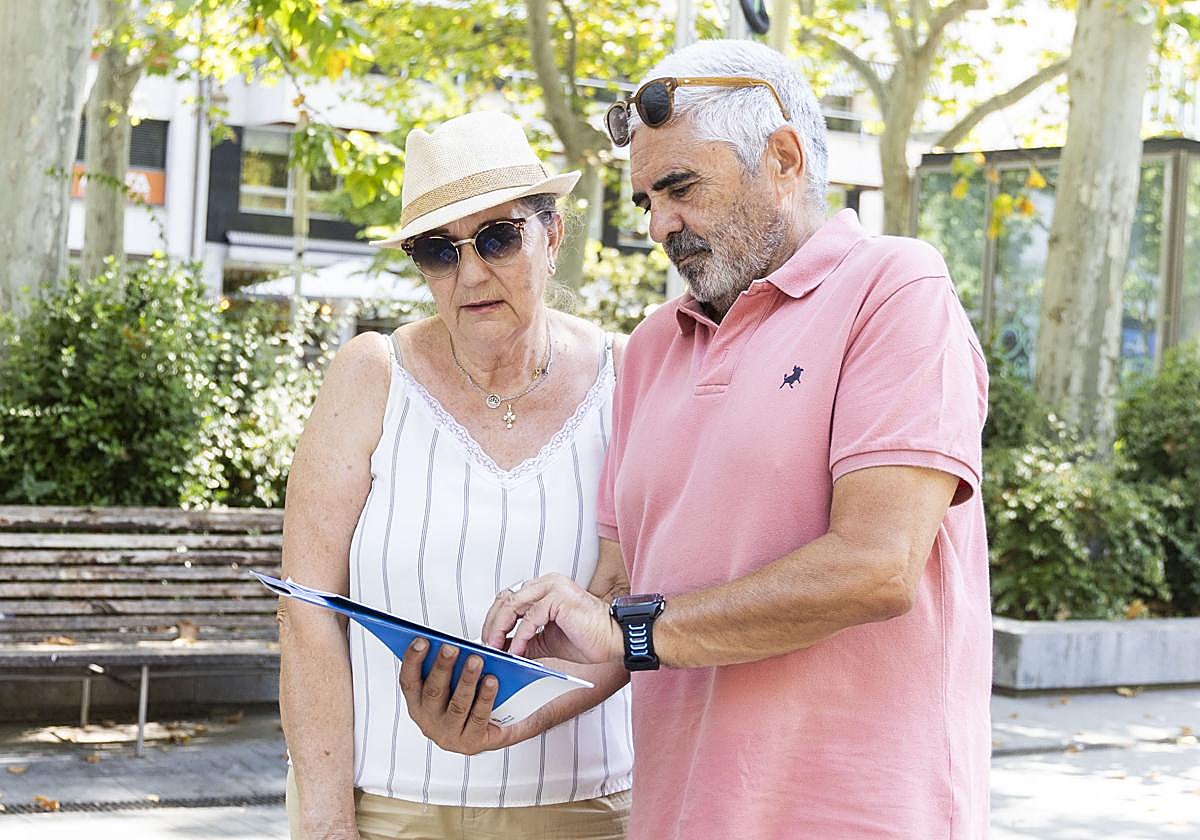 Y es que para algunos vallisoletanos el 15 de agosto es una oportunidad de oro para vivir en Valladolid a un ritmo más pausado de lo normal. Jesús Mato y María Teresa Alonso se detienen frente a la parada del bus turístico para observar las paradas y el itinerario a seguir. Mapa de Valladolid en mano, gafas de sol y sombrero pueden hacerlos confundir como otros turistas más, pero al preguntarles la duda se resuelve en segundos. «Somos de Valladolid y vamos a subir al bus turístico porque nunca lo habíamos hecho. En días como hoy apetece dar una vuelta, refugiarse en casa a las horas centrales del día, y por la tarde, a ver el partido», anuncia Mato, que no se piensa perder el encuentro deportivo de esta noche en el estadio José Zorrilla.