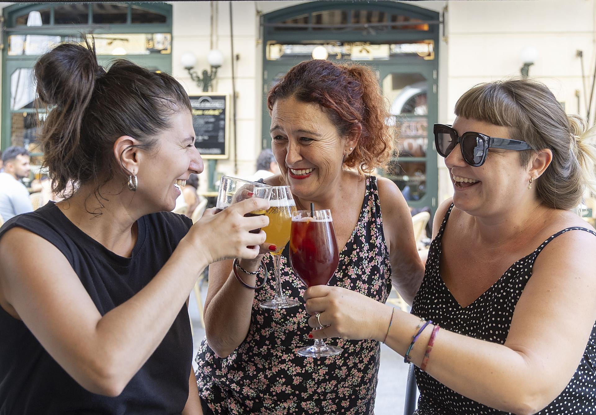 La serenidad de la que tanto hablan se ha extendido hasta la hora del vermut. Con buena parte de los vecinos fuera, las terrazas de las calles Ferrari, Mantería, Regalado e incluso Platerías lucen con muchos asientos vacíos esperando a ser ocupados. Sin embargo, otros se han acercado a los bares para tomar un refrigerio atraídos por la bruma con la que cuentan algunos negocios para refrescar a los clientes en las horas de más calor. «Venimos a tomar algo aprovechando este fresquito», explica un grupo de chicas que se encontraban celebrando un cumpleaños. Y aunque otros sitios no cuenten con una experiencia refrescante son un acierto para los vallisoletanos.