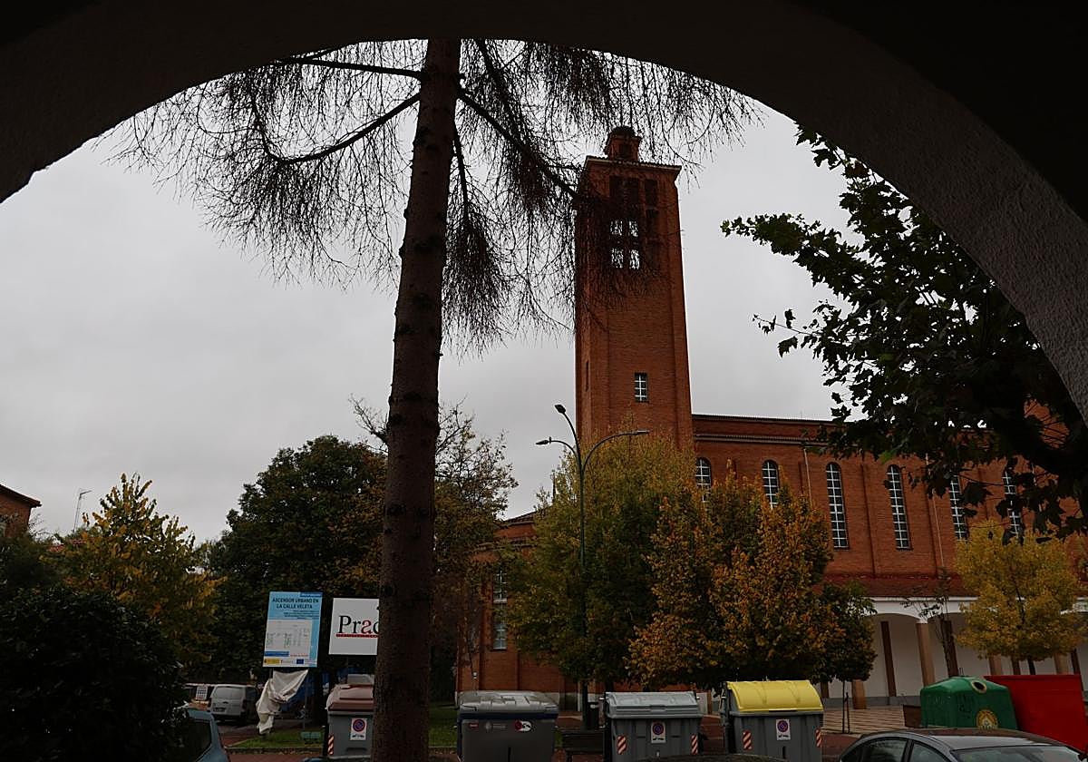 Construida íntegramente en ladrillo, la iglesia de San Pío X se encuentra ubicada en el número 41 de la Plaza Porticada del barrio Girón. Levantado ... dentro del proyecto del barrio, uno de los primeros barrios sociales que se edificaron en Valladolid a principios de los años cincuenta del siglo XX, el templo fue diseñado por el arquitecto salmantino Julio González Martín, autor, entre otros, en la capital vallisoletana, de la Iglesia de la Inmaculada Concepción de María. Es el mayor edificio del barrio. Con planta de cruz latina, orientado el ábside hacia el oeste, posee dos torres circulares rematadas en punta en los pies, flanqueando la puerta principal y una mayor a modo de campanario junto a la cabecera.